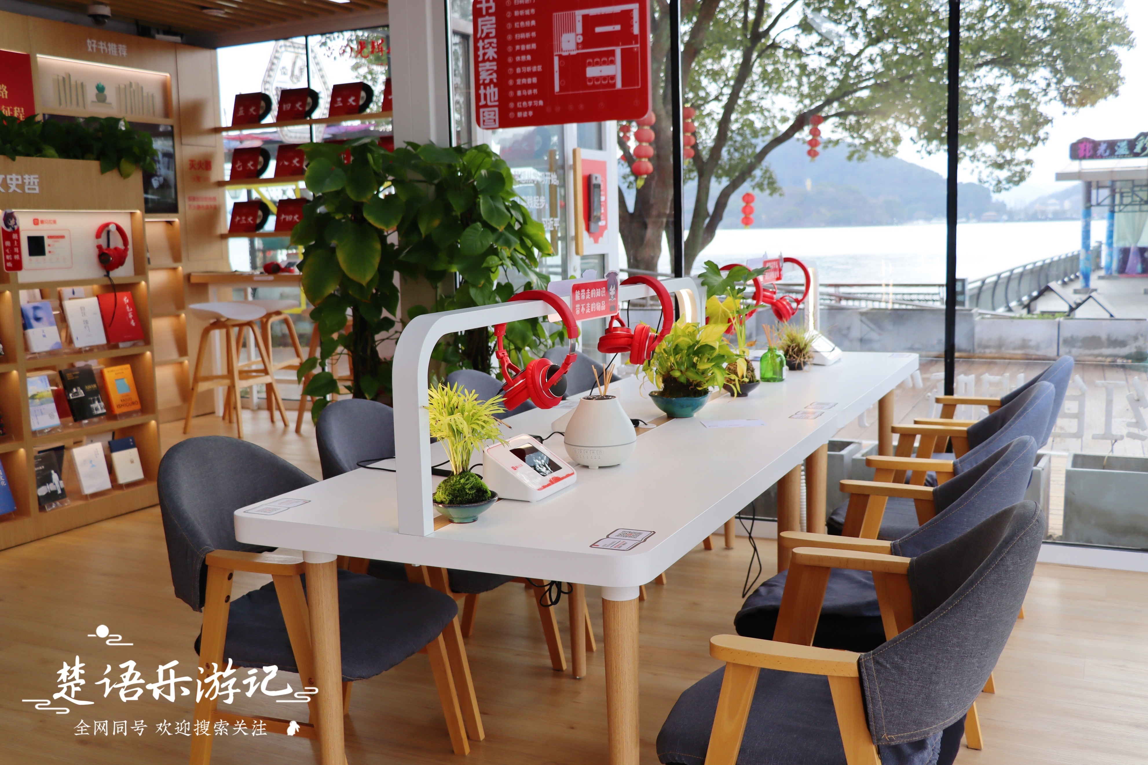 小树林里也有一条步行街,两旁设置了一些帐篷式的潮玩店、儿童游乐设施和可乐餐厅。它的西面还有一个红色学习站,就是城市书房。这样的城市书房在宁波有很多个,就是一个小型的阅览室,里面的陈设很文艺,很温馨,很适合读书,也适合小坐,甚至拍照打卡。