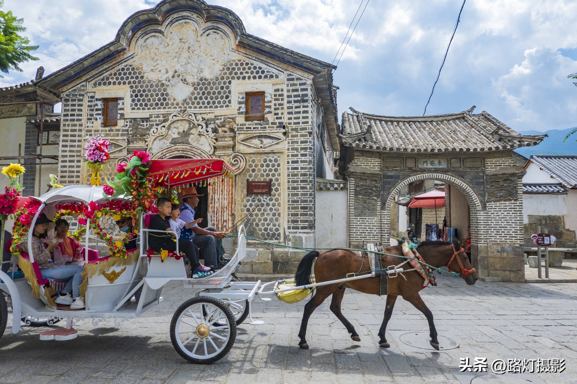 喜洲古镇至今保留了许多少数民族风格的老房子。三合院、四合院,每个院落都雕梁画栋,充满民族风情。到喜洲古镇可以乘坐马车游览,如果需要到特色小店里转转的话,步行也是不错的选择。