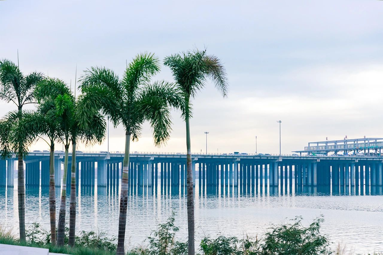 一个很少人知道的海滨公园,无边的观海平台,没有任何阻挡。你可以在这里尽情饱览壮阔海景,看海面上长长的大桥延伸到远方。