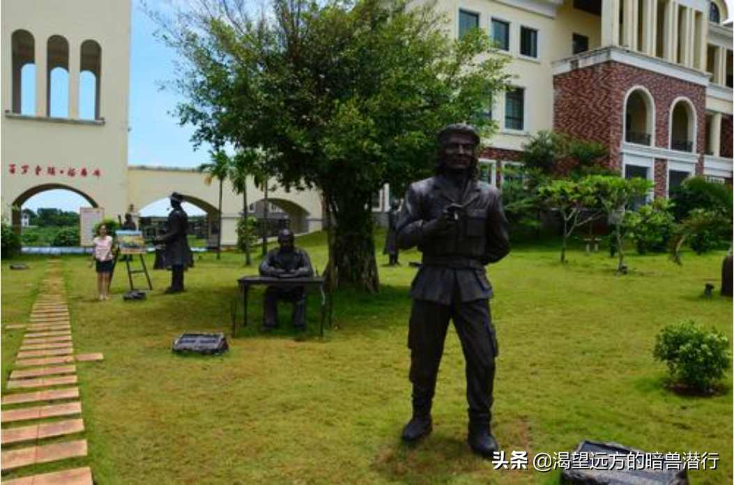 特点:临高角解放公园是解放军渡海登陆战主要登陆点,重点不在这个公园上,重点是在海滩上,那长长的浅滩深入到大海数公里,离海岸数百米的海水都只达到膝盖。也许正是因为这样的长长浅滩便于“抢滩作战”,所以才被选为登陆点的吧!