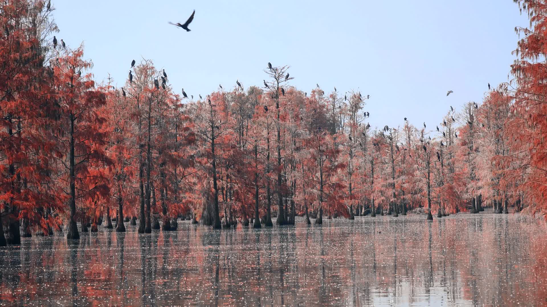 冬天是池杉湖森林公园最热闹的时候,因为北方的候鸟来此过冬。这里食物丰沛,特别适合繁衍后代。游人在这里可以直观地看到鸟类最生动的生活片段。