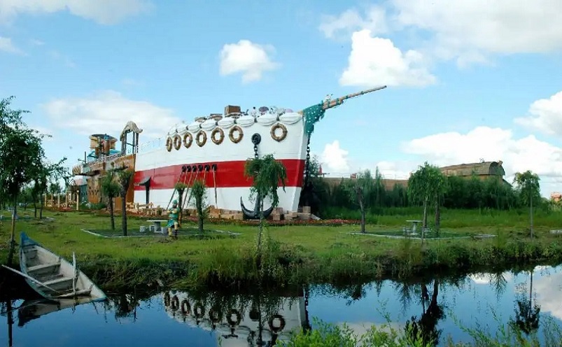 这里还有许多娱乐设施,海盗船十分巨大,坐落于水中央,还有很多海盗雕像,神态各异,带你进入一个不同的世界,宽大的船舱是一个大型演艺场,遇到节假日还可以欣赏表演。