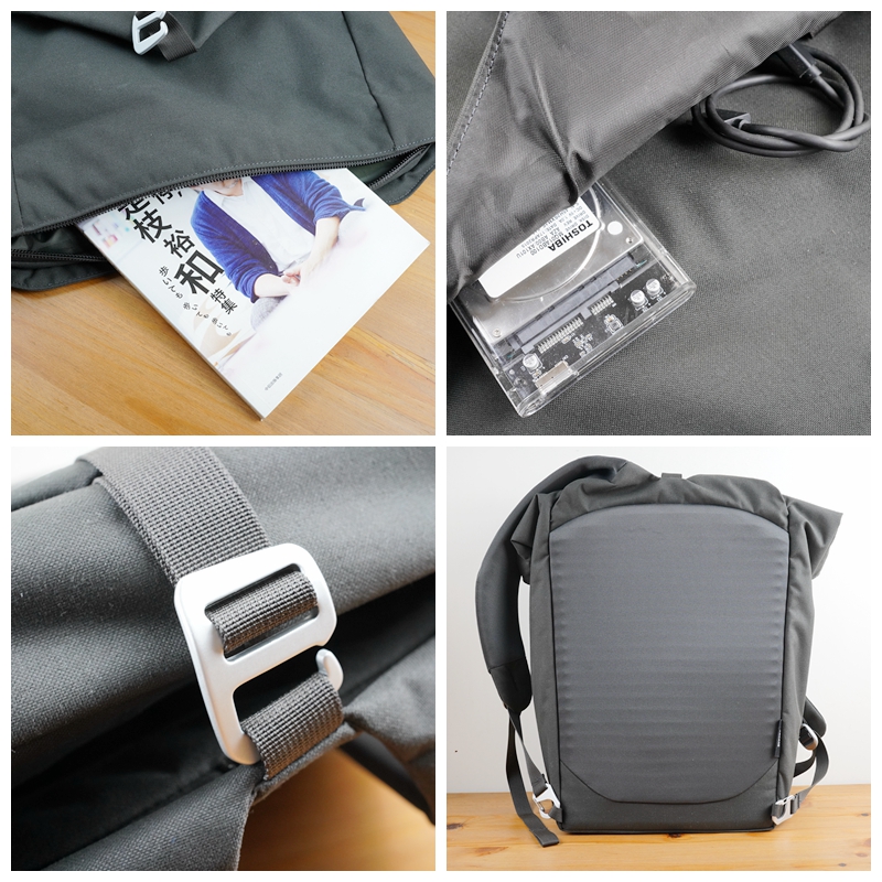 作为兼具背包和拎包设计的全能选手,隐客采用了大开口设计,拿取笔记本电脑等都十分方便。内部也采用了分仓设计,前部的储物仓设计也增加了收纳的位置和方便程度。顶部的固定织带设计,让背包背负大量物品的时候更加稳固。背板设计亲肤透气,日常通勤和旅行背负时间不算短,不过透气性和舒适性表现都比较不错。