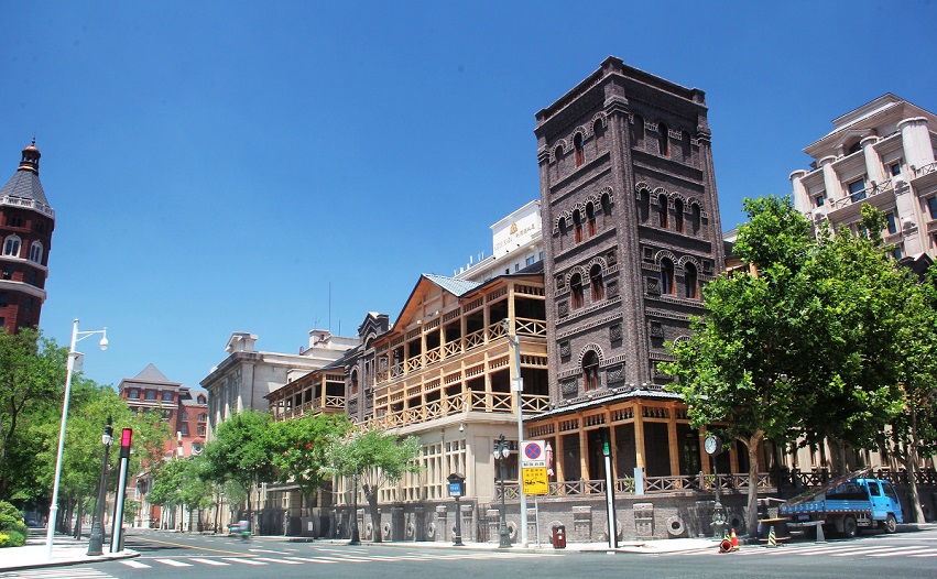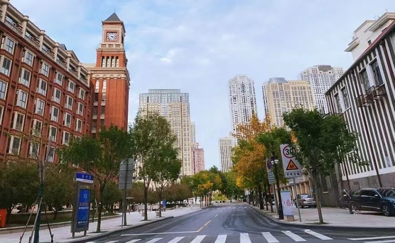 这条道路都是灰色的砖石铺就,两边是高大的树木,枝繁叶茂、绿叶遮荫,街边是一幢幢造型独特的建筑,有哥特式、罗马式、日尔曼式、俄罗斯古典式等中世纪古典西洋建筑,让你不出国门就能领略异国的风情。