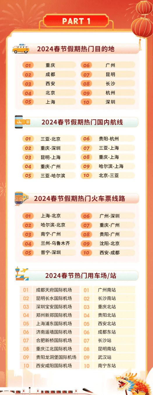 冰雪游、年俗游、亲子游,这旅游方式那是五花八门,年轻人最爱。各种旅游活动也是精彩纷呈。数据显示,国内热门城市的机票、火车票、酒店预订量,同比涨幅超过了三成呢!川渝地区、华中地区的省市成了热门的返乡地,客流的小高峰出现在2月13号到14号。