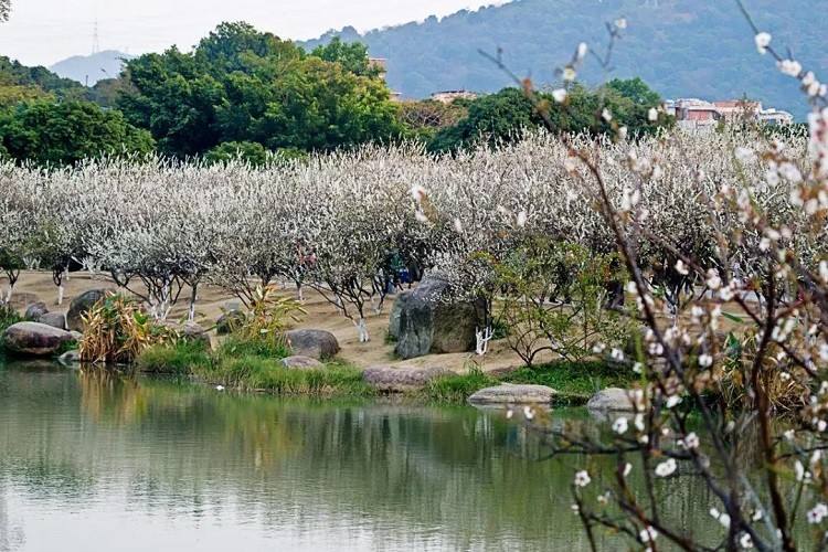 萝岗种梅始于宋代,因气候优越,时常梅开二度,有红有白,梅萼有单托、双托。每到岁末,冬至前后,梅花盛开,繁花似锦,寻雪踏梅的人纷至沓来,一时游人如过江之鲫,好不壮观,“萝岗香雪”胜景由此而来。