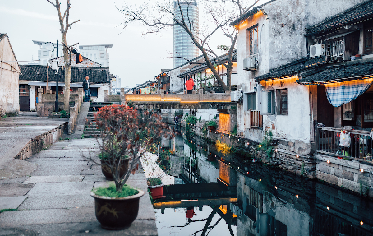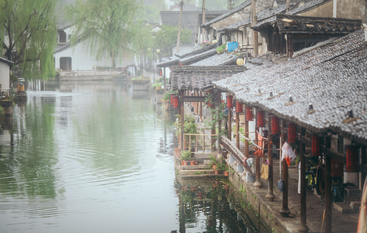目及之处,粉墙黛瓦,枕水人家,丝毫没有商业,有的脚踩青石板路带来的回响。