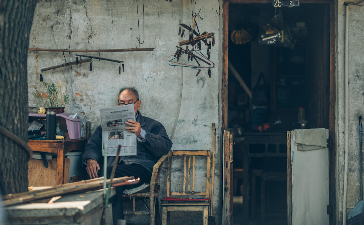 老人倚着墙闲聊家常,或是坐在路边得闲饮茶,也有居民在户外立锅炒菜,烟火气在这条不宽的老街升腾了起来。