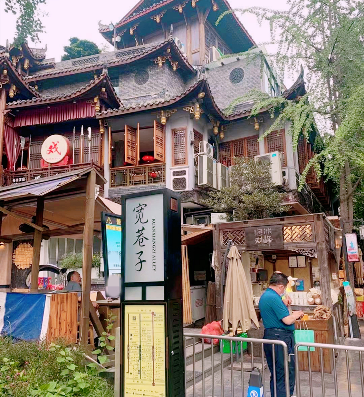 宽窄巷子由宽巷子、窄巷子、井巷子组成形成,到处都是具有清朝风味的四合院建筑。不过因为到处都很新,所以看起来有点假,但它也确实是成都保留下来的一块比较完整的清朝古街道。