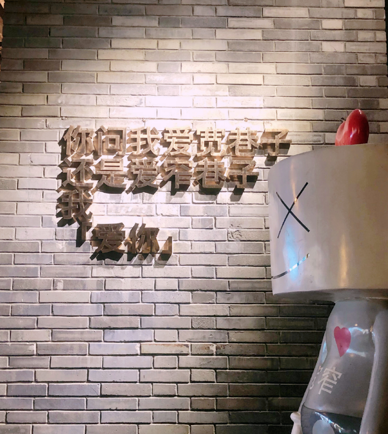 窄巷子则是文艺青年的聚集地,从头到尾没有一处没人打卡拍照,穿什么服装的都有(当然汉服最多)。到处都是装修精致的酒吧、轻便快餐店、和休闲馆。我们虽然没买什么东西,但有些店铺光是看看装修也挺养眼的。