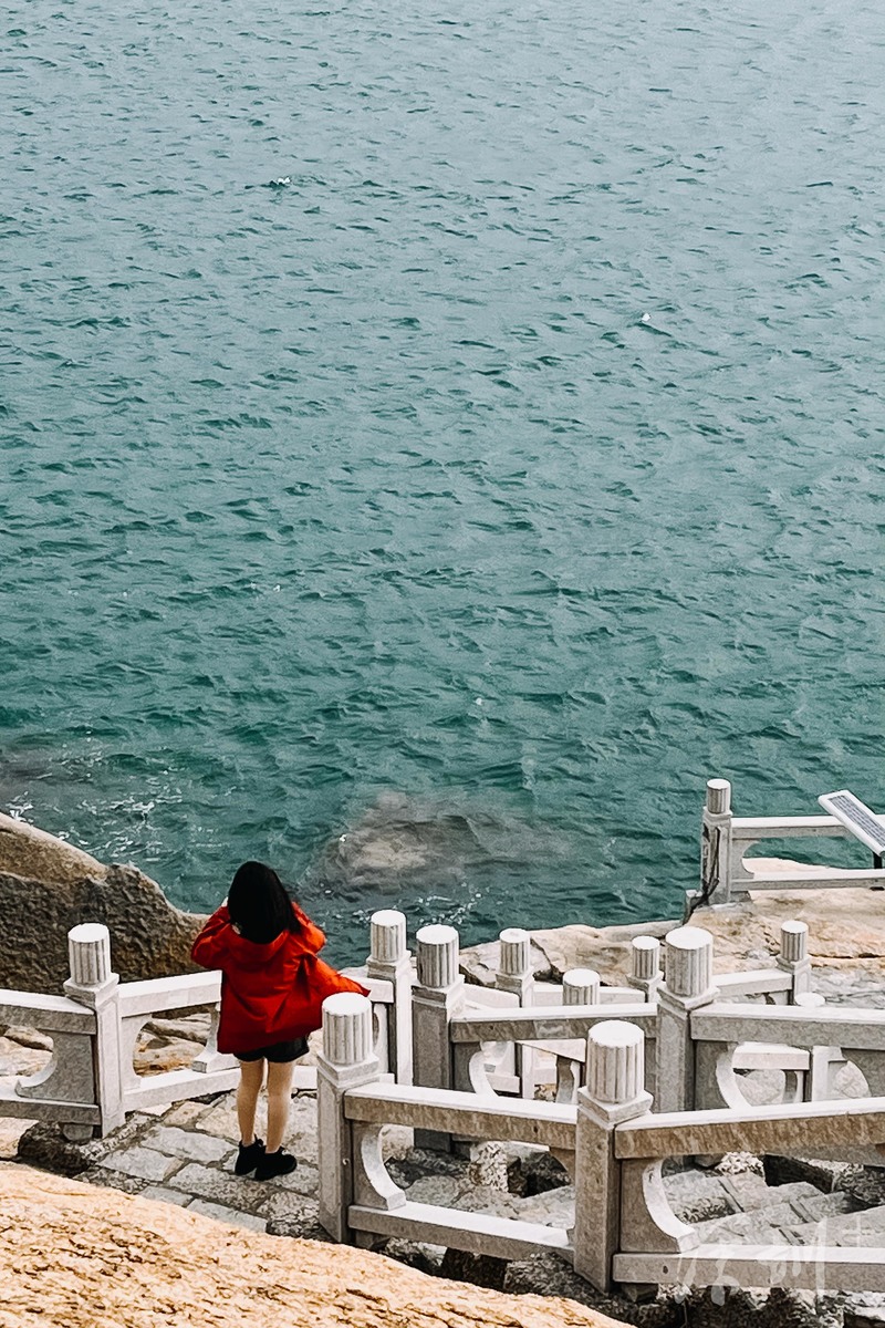 想要一览整座岛屿的美景,首选还是北山观景平台。乘坐观光车即可来到山顶,目之所及,是雾气弥漫的柔光,好似给整座岛罩上了一层薄薄的面纱,海天一色的美景若隐若现。