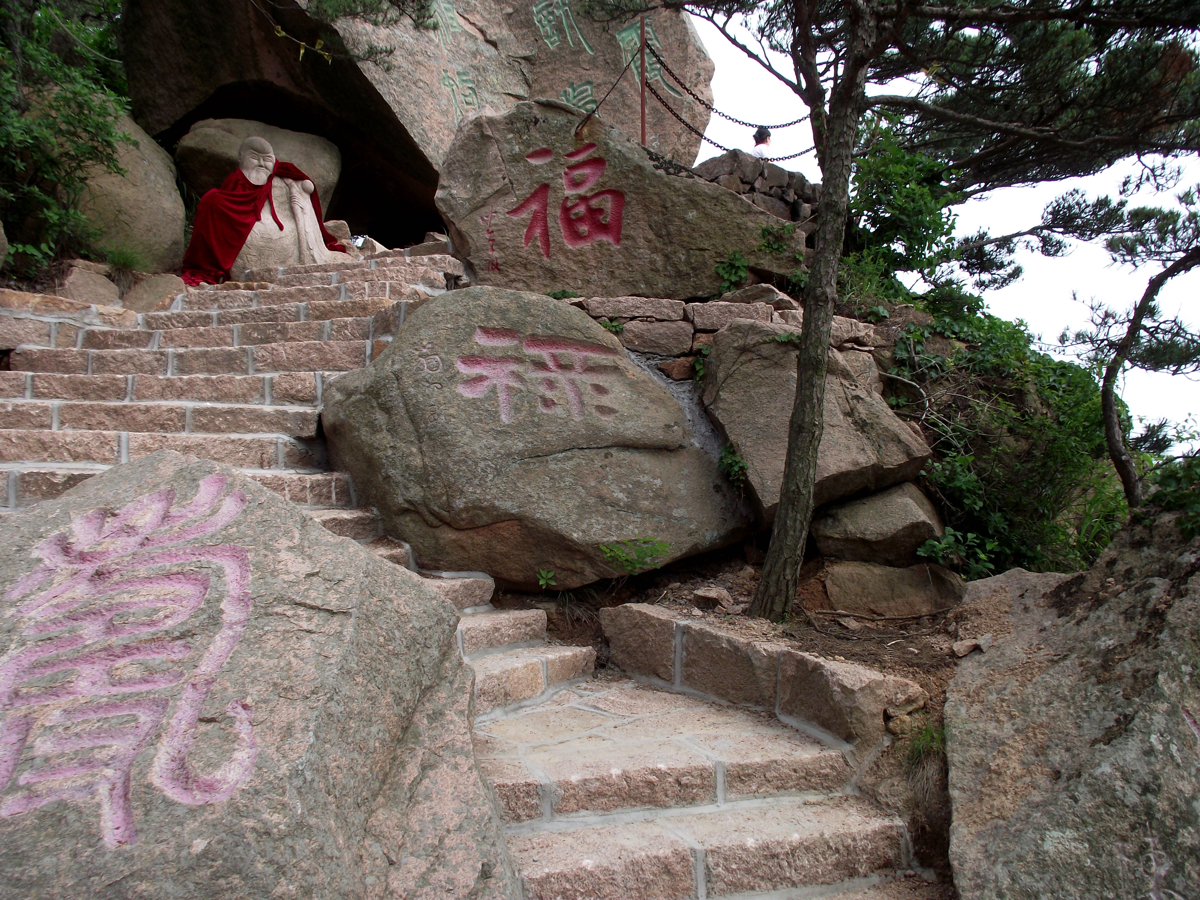 成山头为胶东半岛海滨风景名胜区的一部分,又名“天尽头”,有“中国好望角”之称,位于胶东半岛最东端。这里三面环海,一面接陆,群峰苍翠连绵,大海浩瀚碧蓝,峭壁巍然,巨浪飞雪,气势恢宏。据史书记载,秦始皇曾两次驾临此地,求寻长生不老之药,留下了“秦桥遗迹”、“秦代立石”、“射鲛台”、“始皇庙”及李斯手书“天尽头秦东门”等古迹。
