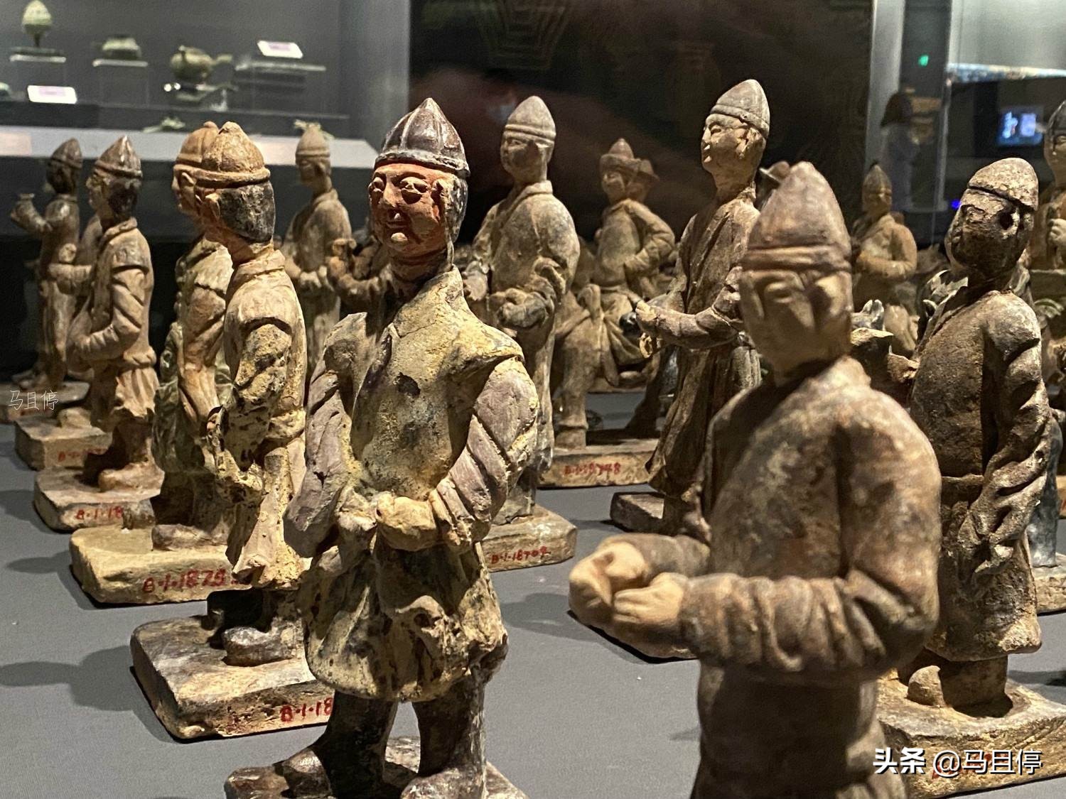 文物不少,我个人最喜欢的就是这款出土于贵州兴义的铜奔马全长112厘米,由马首、尾、颈、足、躯、耳等装配而成,整个马匹神情逼真,昂首翘尾,活灵活现仿佛将要腾出展柜。