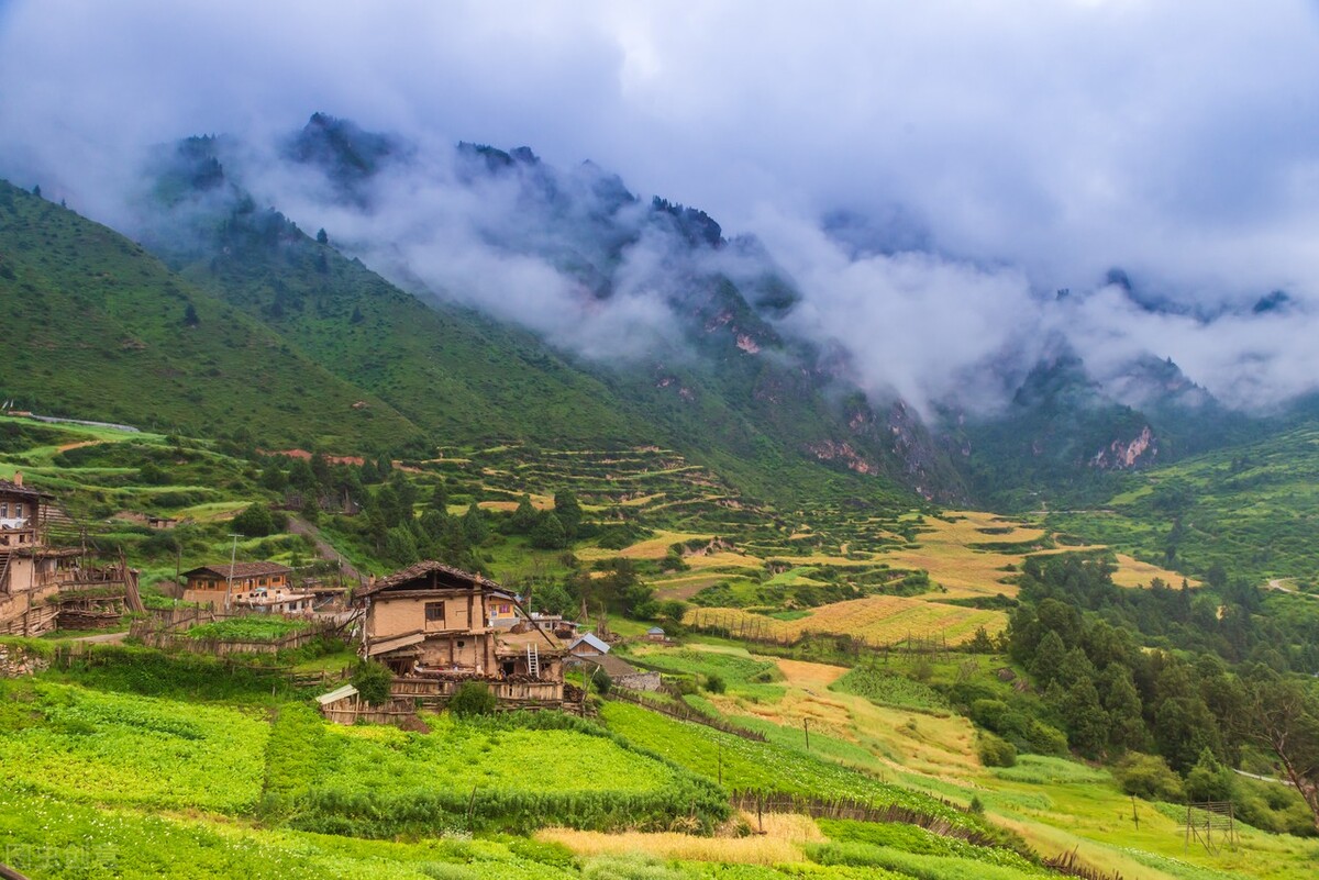 雾里人家,苍松翠柏,真的好美,高山、白云、雪杉、草地、藏寨、青稞梯田、溪谷,构成一幅大气磅礴的中国水墨画卷。