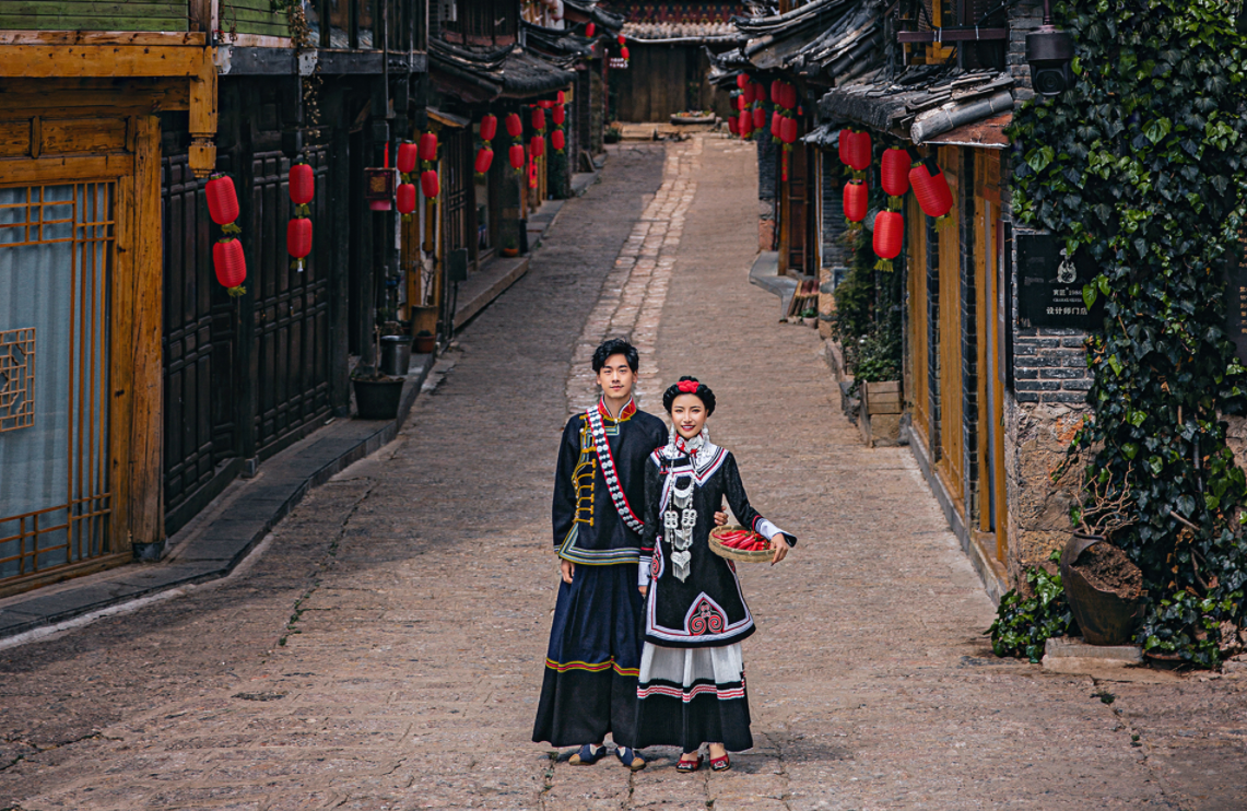 喜洲的老房子很多,特别适合拍文艺范儿的风格片。还有五颜六色的白族扎染为背景,异域风情浓郁。