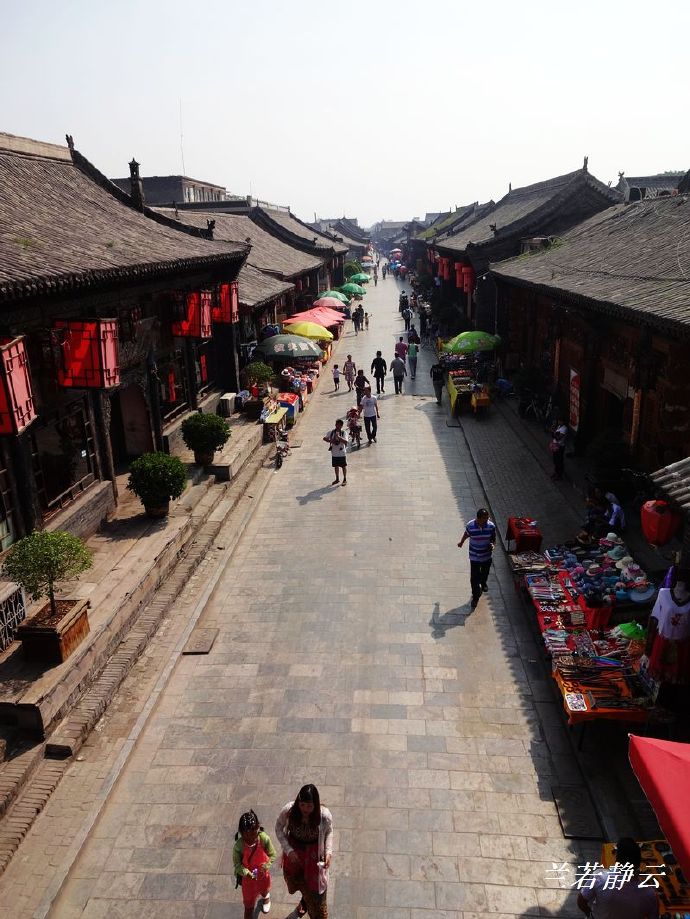 上图是我站在平遥的南城楼上拍摄的,远处的建筑为市楼,中间的这条大街便是南大街,也称为明清古街。