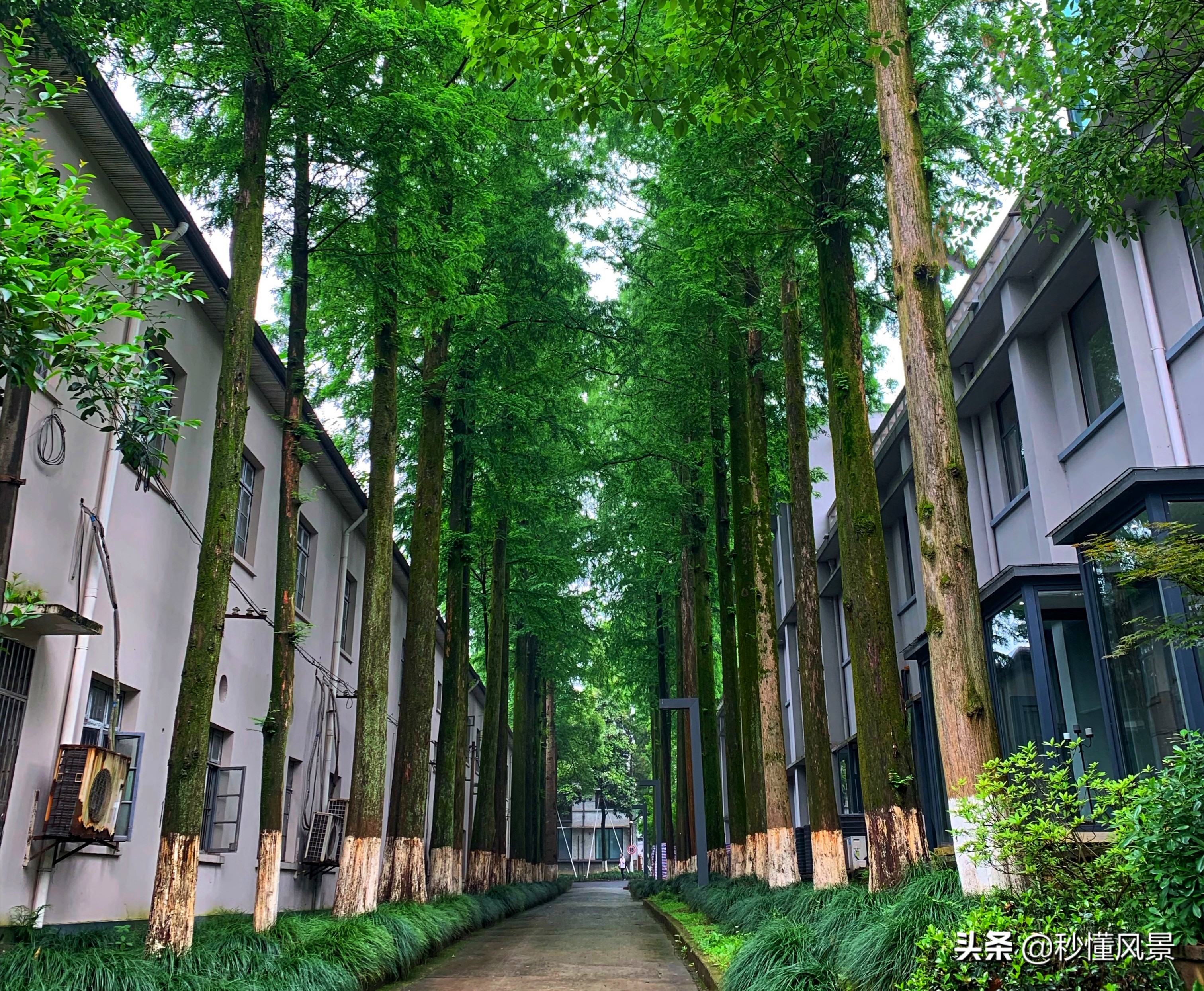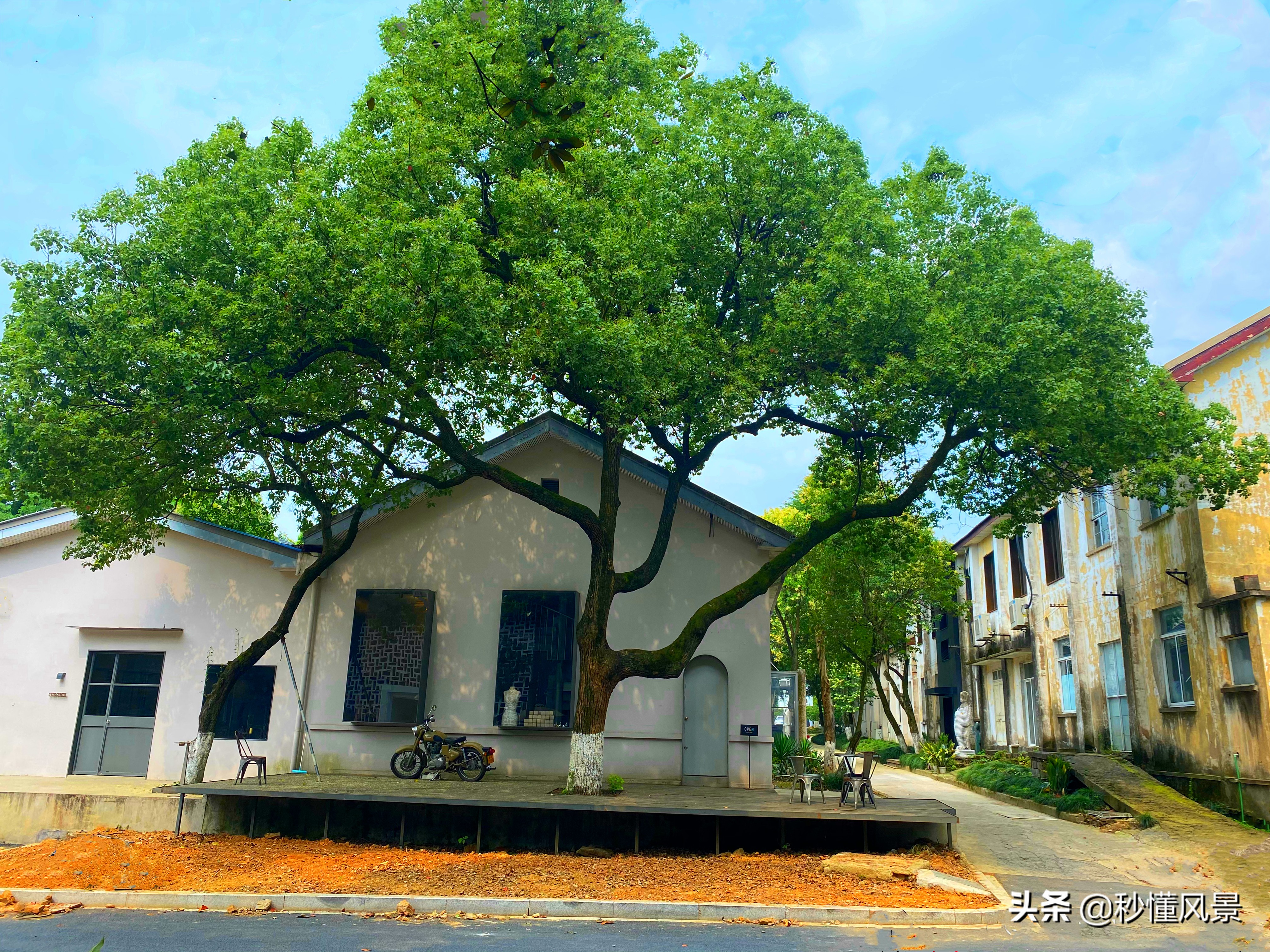 可能好奇的朋友就会问了,这个地方到底是在杭州哪里?那里又有着哪些不一样的风景呢?带着这些疑问和好奇,今天就和大家一起来聊聊,有关杭州东信和创业园的那些事。首先,大家现在看到的这些被绿植覆盖的区域,则是属于它的办公场地的一部分。东信和创园这个被完整保留下来的老空间,历经了50多个春秋风雨。当时鼎盛的工业人潮已经从老厂房中褪去,唯有这61幢房子和1000多棵高大的乔木构建着厂区宏大的空间。
