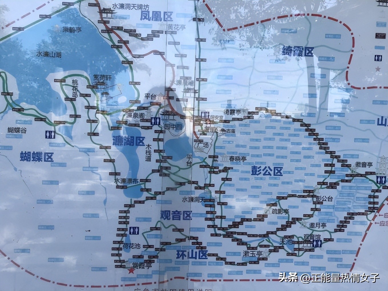 从停车场往上走,是公园的洗手间和大门口,也是登山口。此处有两条路线,主路是有着牌坊的“水濂洞天”,辅道是“蝴蝶谷”,但无论哪条路都是“条条大路通罗马”——既能通往“水濂阁”,也能通往其它旅游景点,譬如“水濂洞天”。