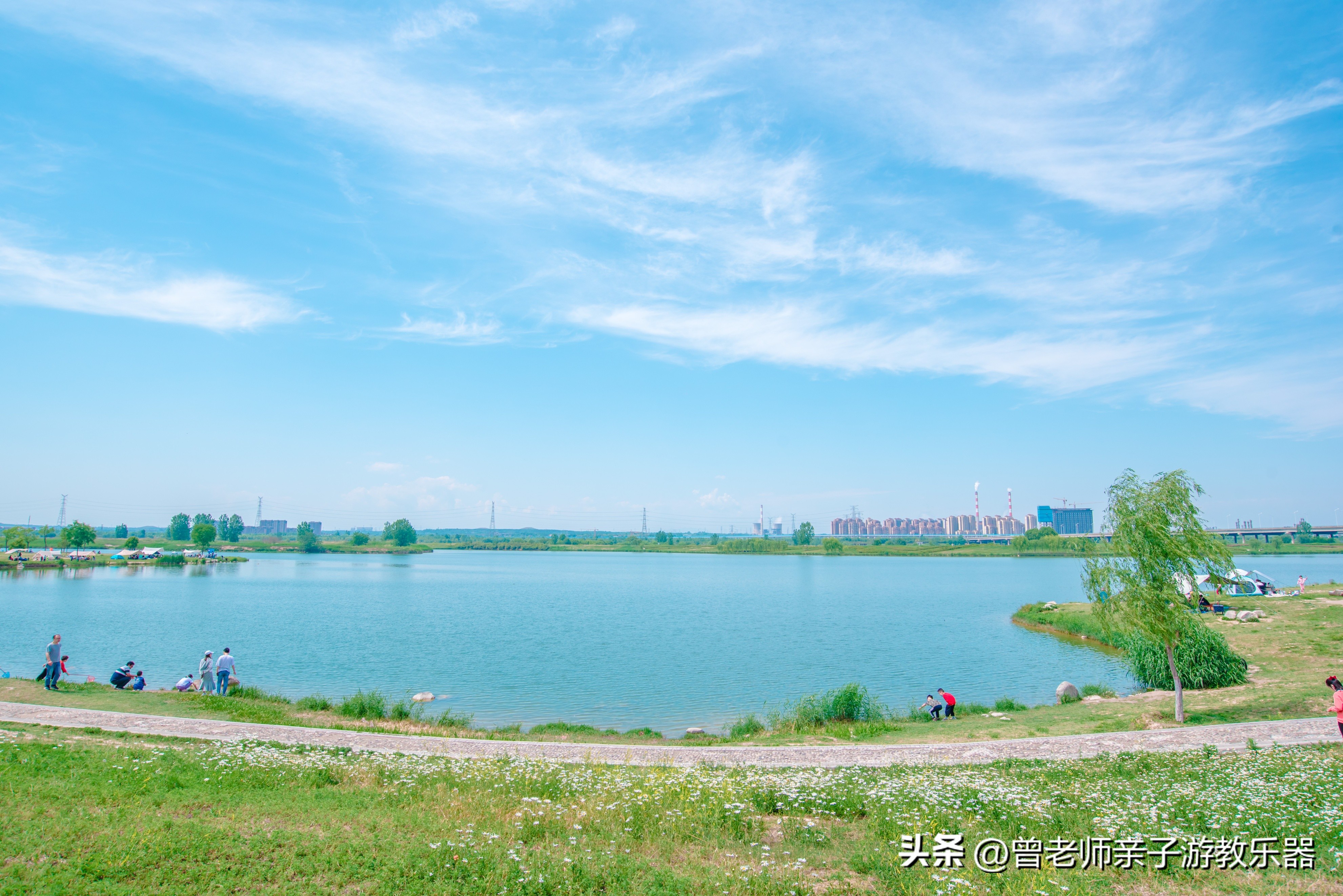 4月的西安湖遍地是草坪,湖边非常适合溜娃休闲帐篷
