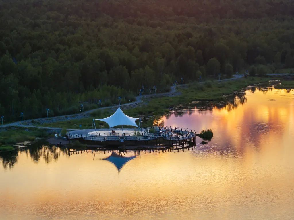 韩家园镇不大,却处处透着“风景如画”的惬意。这里的旅游景点丰富多样:近处有波光粼粼的金水湖、满含特色的金文化主题公园,还有生态静谧的双河源湿地;往远些走,便是国家级森林公园——绰纳河自然保护区。小镇的森林覆盖率极高,“城在林中,林在城中”,这句话用来形容这里的景象,再贴切不过。