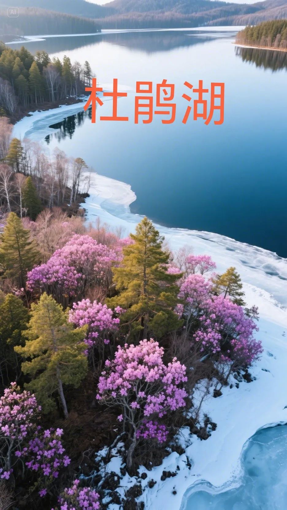 杜鹃湖:春季湖畔杜鹃花盛开,冬季冰封如镜。