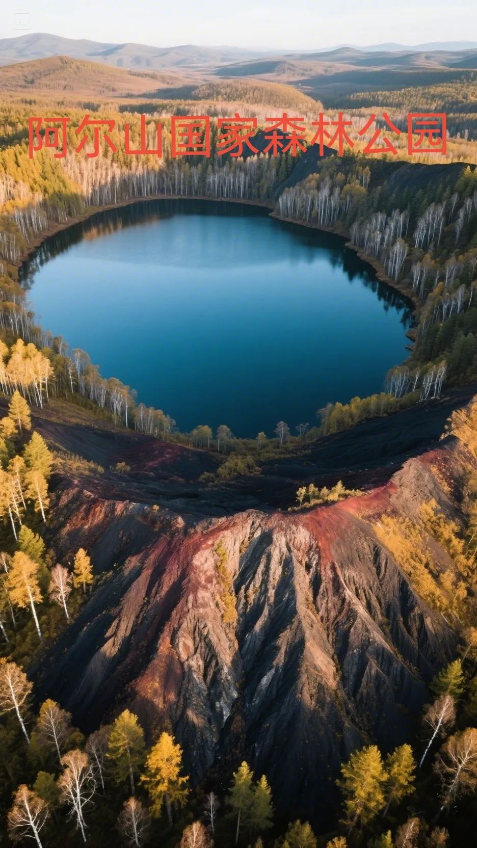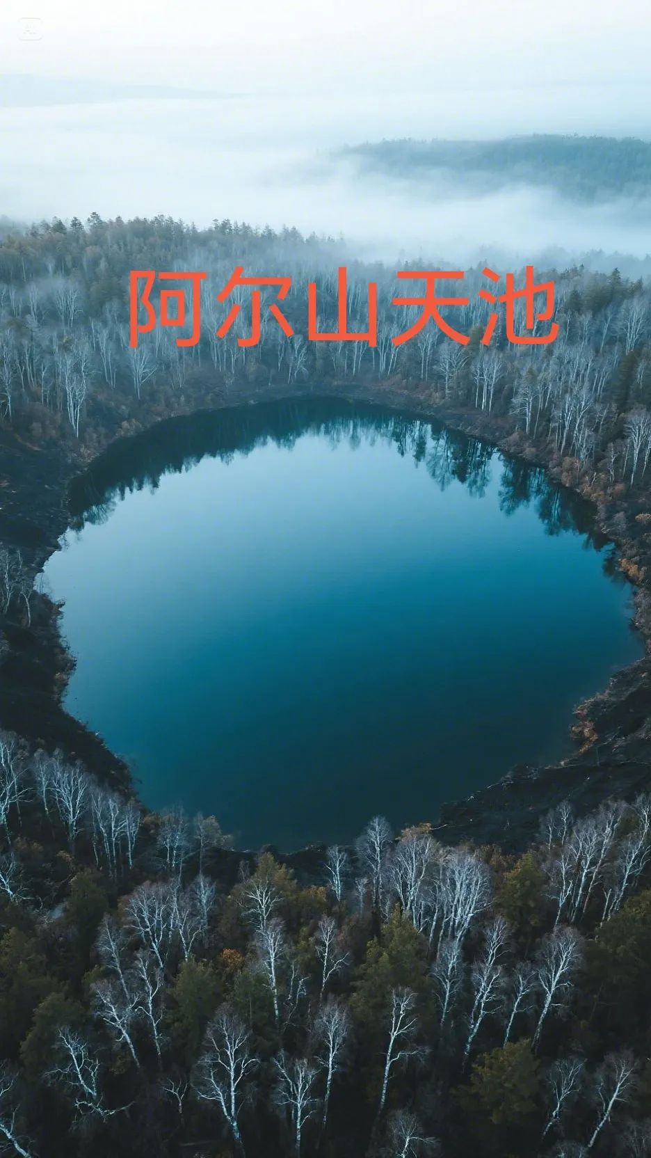 阿尔山天池:火山口湖,四周白桦林环绕。