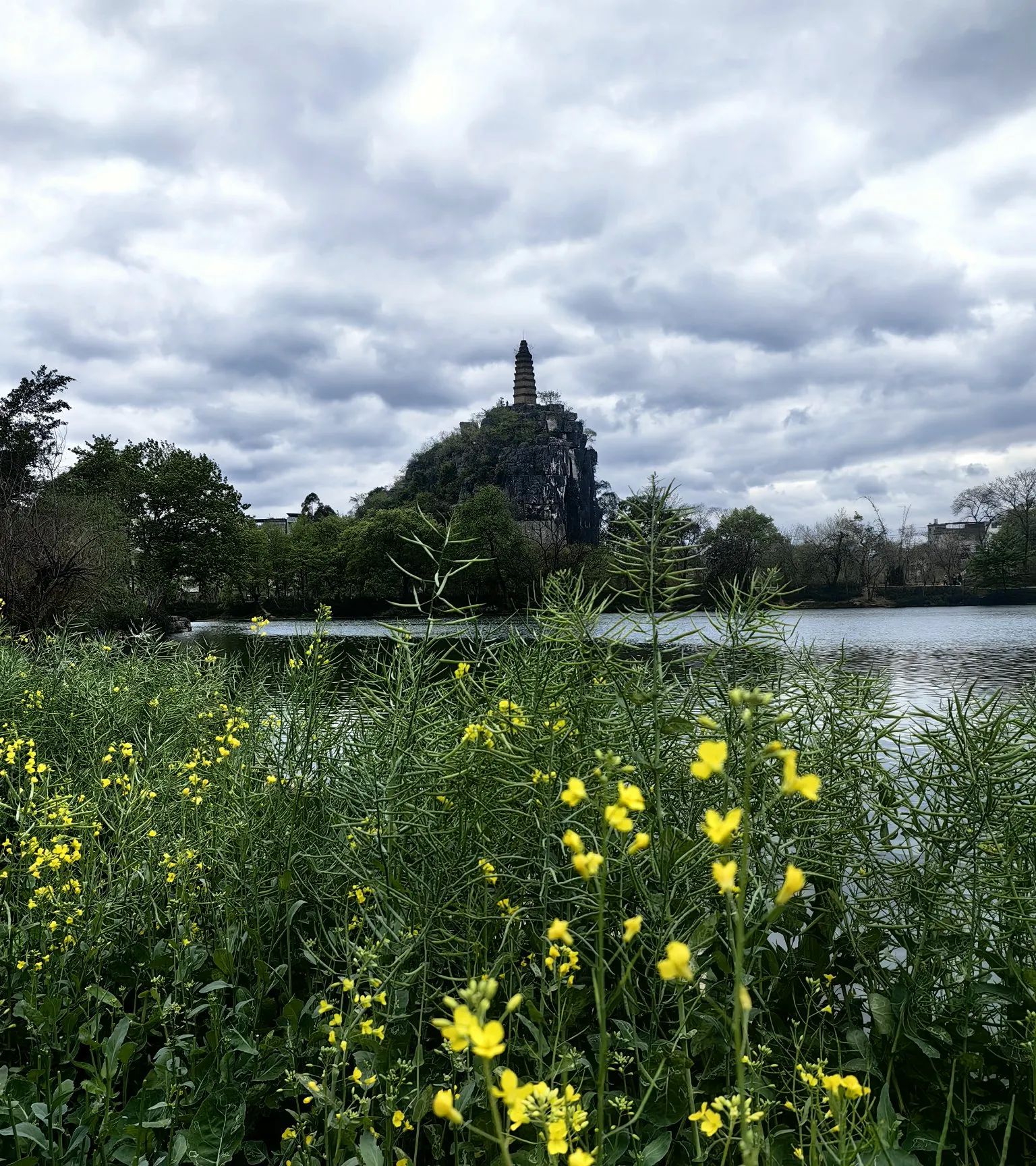 月岩位于穿山山腰,直径约10米,形如满月,是桂林“穿山挂月”奇观的来源。穿山岩地下溶洞,1979年因农田灌溉偶然发现,洞内钟乳石密集,没找到哈哈。塔山与穿山隔江相望,山顶有明代寿佛塔(七层六角砖塔),传说为镇风水而建。塔山倒影为桂林经典摄影取景地,入选过人民币图案。漓江观景带就在游客中心边上,现在有一点油菜花,江中有一小亭,是摄影打卡的好地方。月岩顶上是明月峰,与之辉映的是穿北亭,都有石道可登顶,360度看群山如画。不过有没有人觉得图一这穿山明月峰像《冰河世纪》里的长毛象?下山后可以经过网红小亭到对面的塔山,登塔反望穿山全貌。两头爬山到顶加上塔山到顶约2个小时够了。