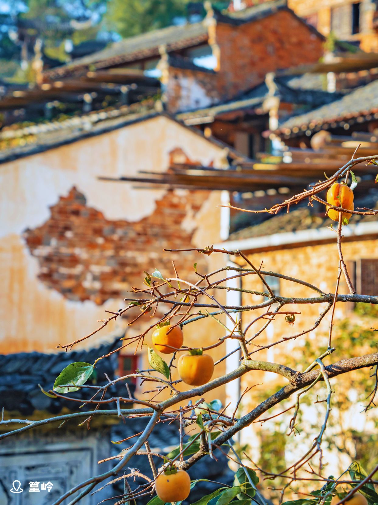 10月中旬 - 12月:婺源篁岭的网红柿子树,简直是秋天的“顶流”!挂满枝头的柿子,寓意“柿柿如意”,配上五彩晒盘和古朴建筑,这浪漫谁能扛得住