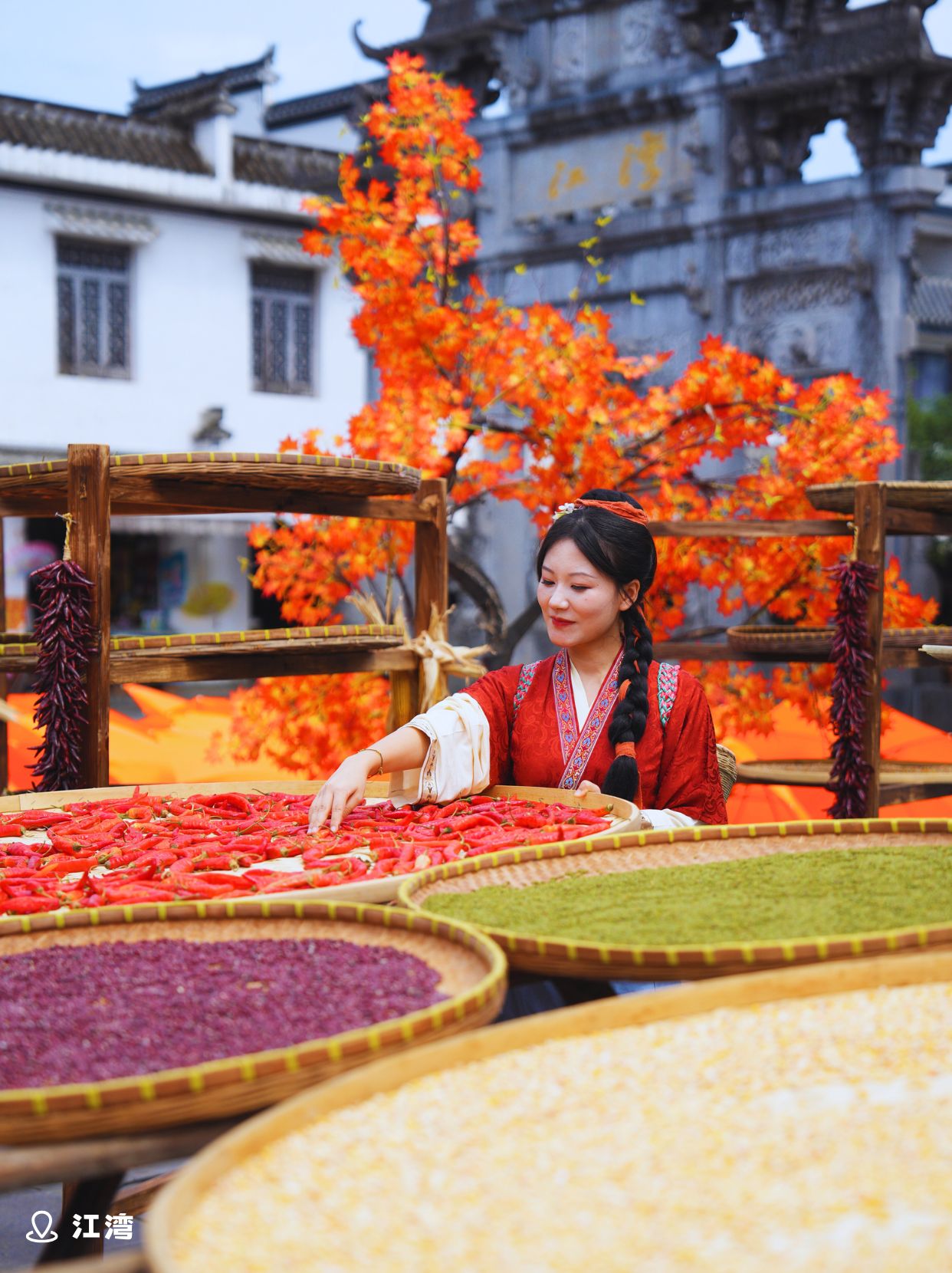 8月7日 - 12月:婺源的晒秋,简直是一场视觉狂欢 一到这时候,整个小城都热闹起来,五彩晒盘随处可见,就像打翻了颜料盒,浪漫得不像话,拍照出片率100%!