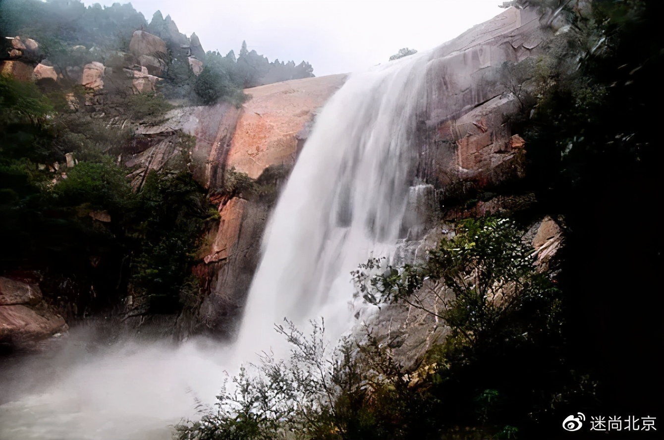 瀑布高达三十多米,中间有130厘米高的崖坎