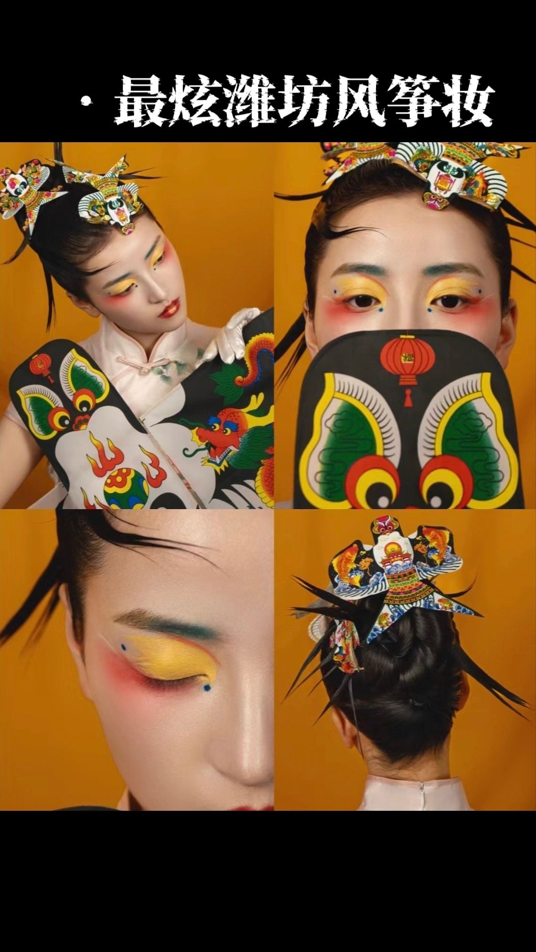 美妆博主用风筝元素设计国风妆容:眼角飞起沙燕风筝尾翼,腮红晕染成“落日纸鸢色”,连鞠婧祎仿妆大神都来参赛!