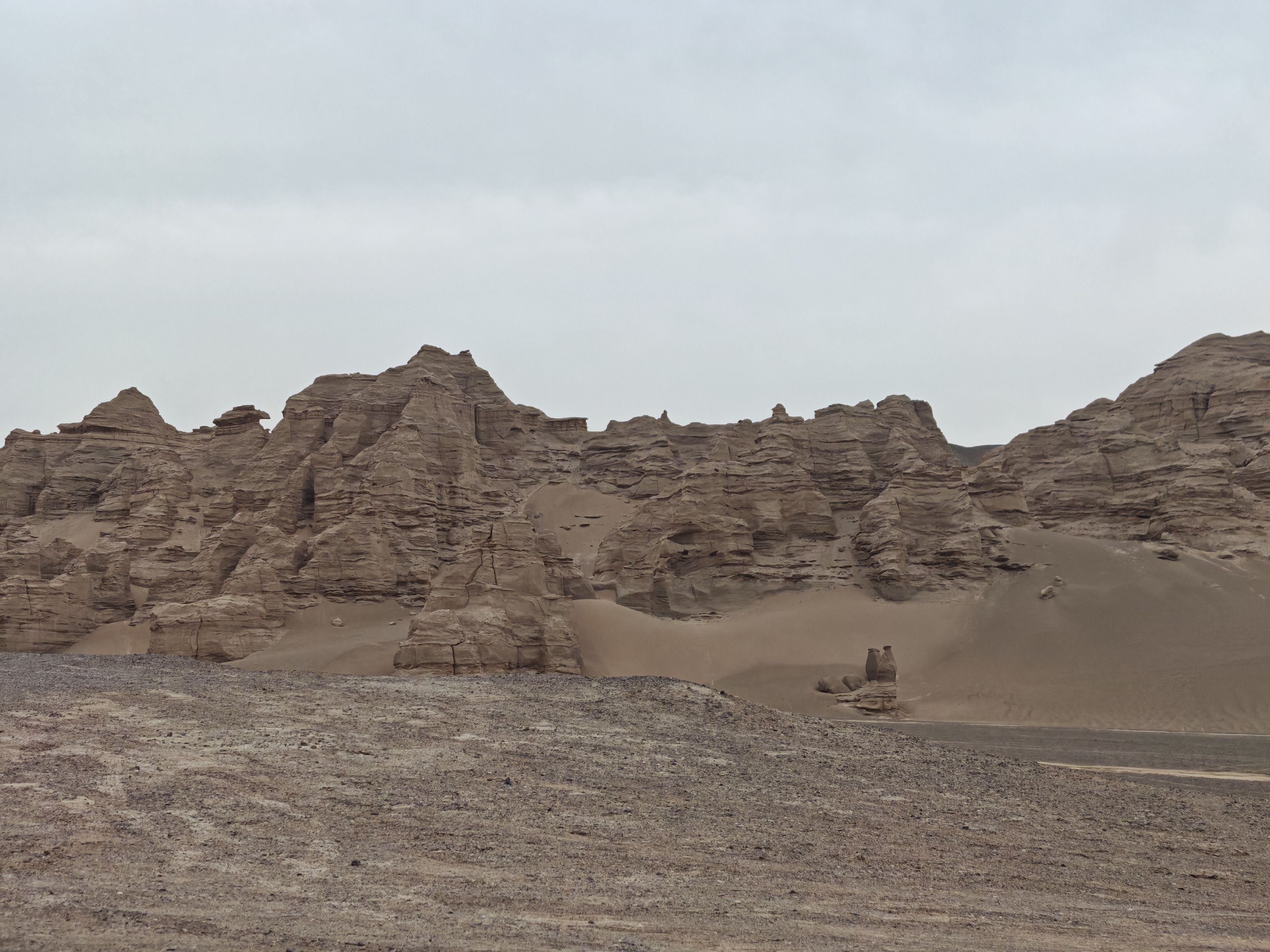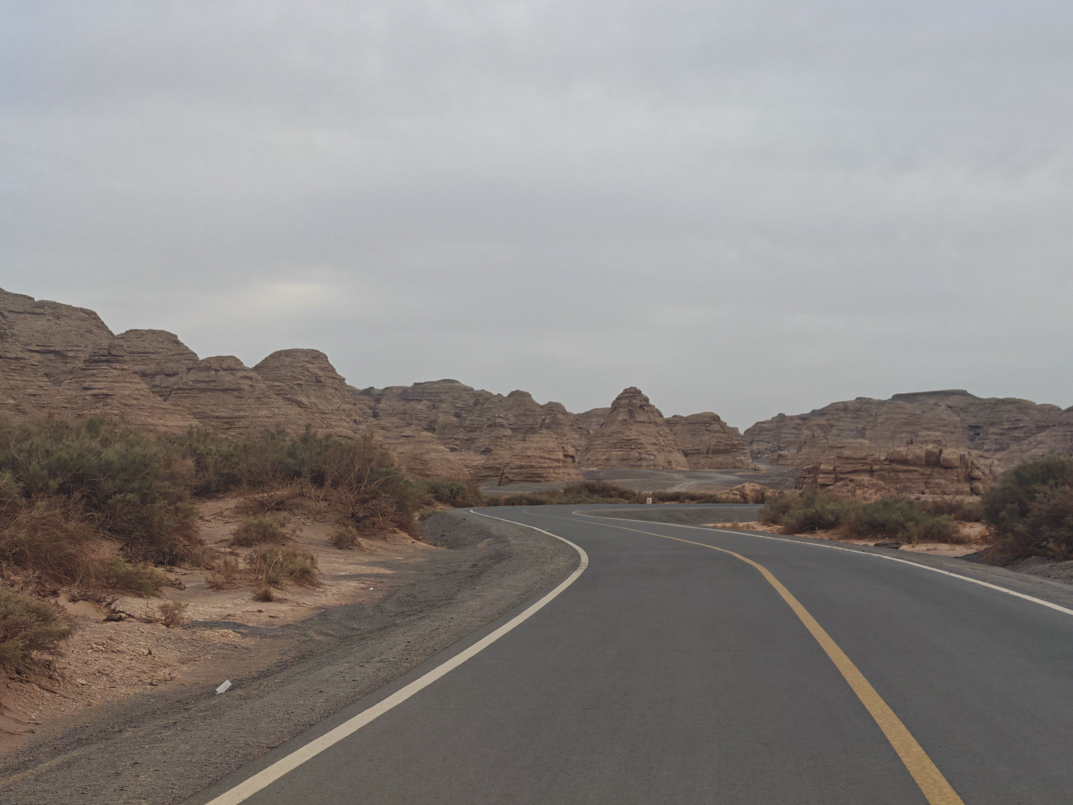 为什么说高德无德?因为在地大物博的新疆,地图缩得太小,显示不出所处位置的名字,放的太大,又找不到所处方位。这吋如果有张纸质地图就完美了,可以结合高德选择前进方向和前往目的地。没办法,只有找到一个离高速公路或城填近一点的目标,分段导航,想尽快走出无人区。通过搜索,发现现在所处位置,正好处在鄯善和哈密中间,回哈有点太浪费时间,看来只有去鄯善了,地图显示到达时间为凌晨一点。奔着这个目标,努力前行。期间,有几辆自驾的难兄难弟,一直远远跟在我后面,摸索前进。当时的狼狈就不多说了,眼看着灯光就在近前,却是一直无法到达,眼看着高速就在旁边,却就是上不去!最关键的是道路实在烂的一踏糊涂,根本没法加速。有一段时间,看到有人在主路旁边轧出一条辅路,虽然也不好走,但还是比主路的搓板路要好走很多。问题是周围漆黑一片,除了车灯照的见的前方,四周什么也看不见。同时又怕附路与主路并不平行,而是通往其他地方,为避免走错,又不得不回到主路走上一段,瞅准时机再走一段附路,如此往复……