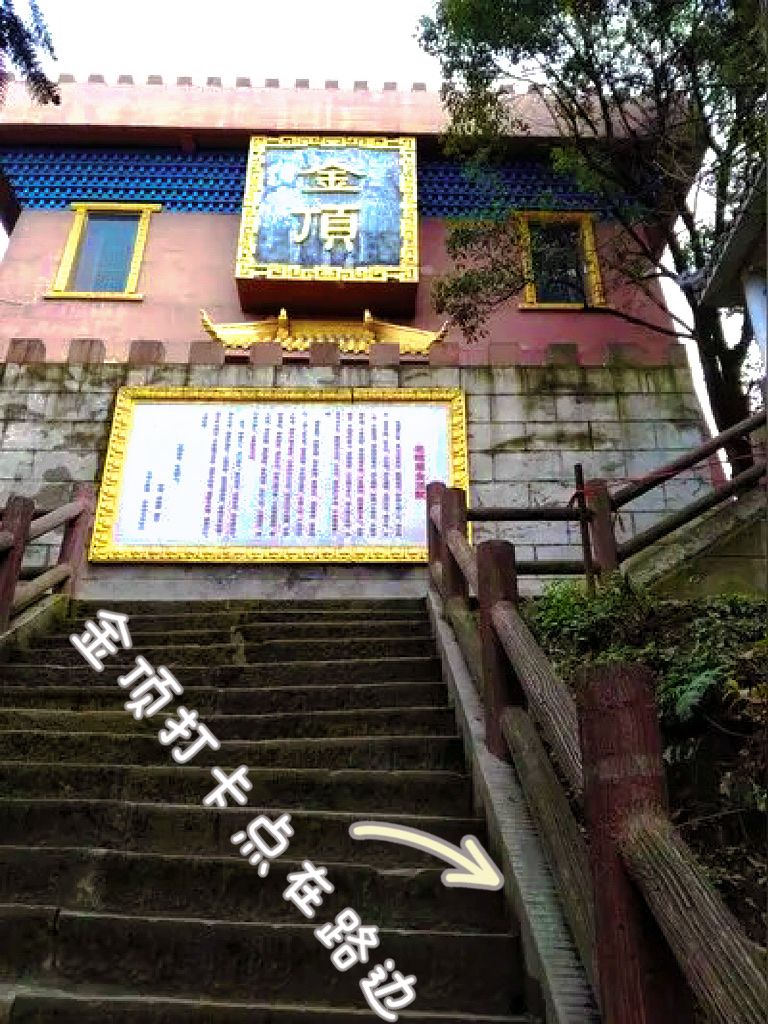 到达“金顶”(景区最高处)完成最终打卡任务(图13)后(小程序提示全部点位“完成”才可以领取奖牌)按金顶打卡牌指示,延山路回到“佛缘爱”(图14)然后延公路回到徒步入口,坐车下山,在游客中心兑换!