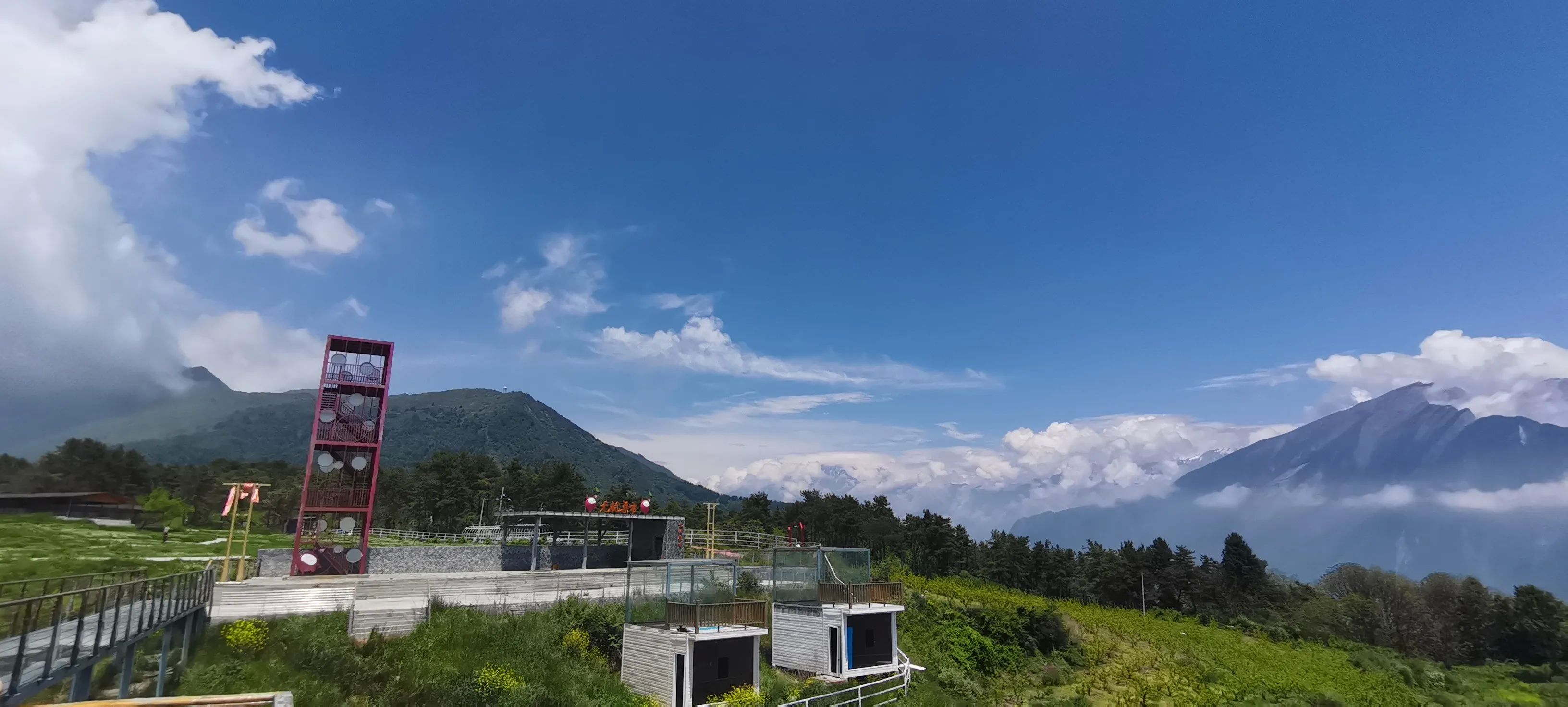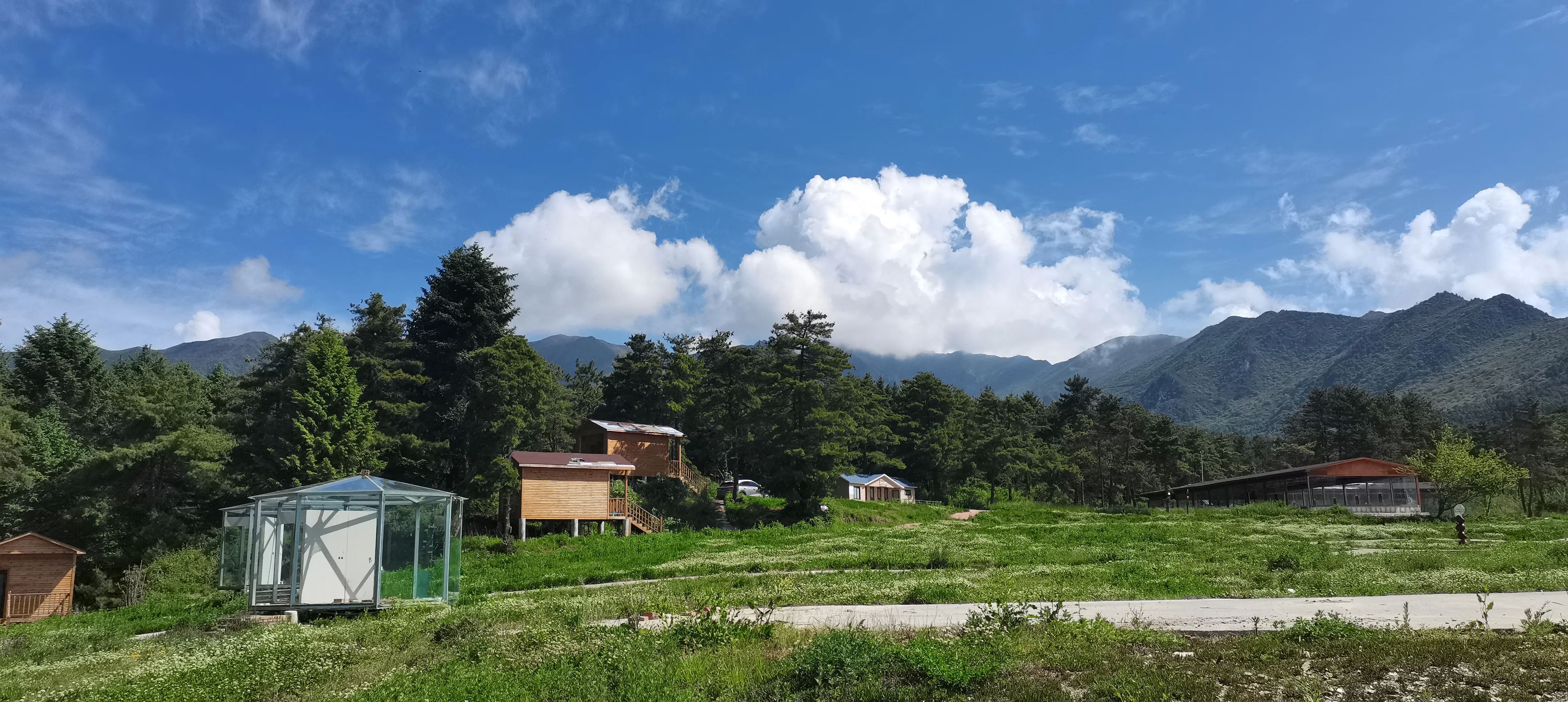 在汶川县城旁,有一个无忧集市,海拨2400左右,也就是很多贴子都提到的去往“开心牧场”的途中,直行往开心牧场,向左便是去往这个偶有人光顾打卡的无忧之地。我周末在上面两天,除了我们之外,整个场地无他人露营,零星上来的都是转一圈打个卡便走了。也许是汶川包括阿坝境内 太多类似的观景露营场地,可这地方现在免费啊,目前无人管理,场地宽阔,初具规模的小木屋和360度的星空观景房空置,随你选择,且离川A大军距离不远,实在是不要太香了。