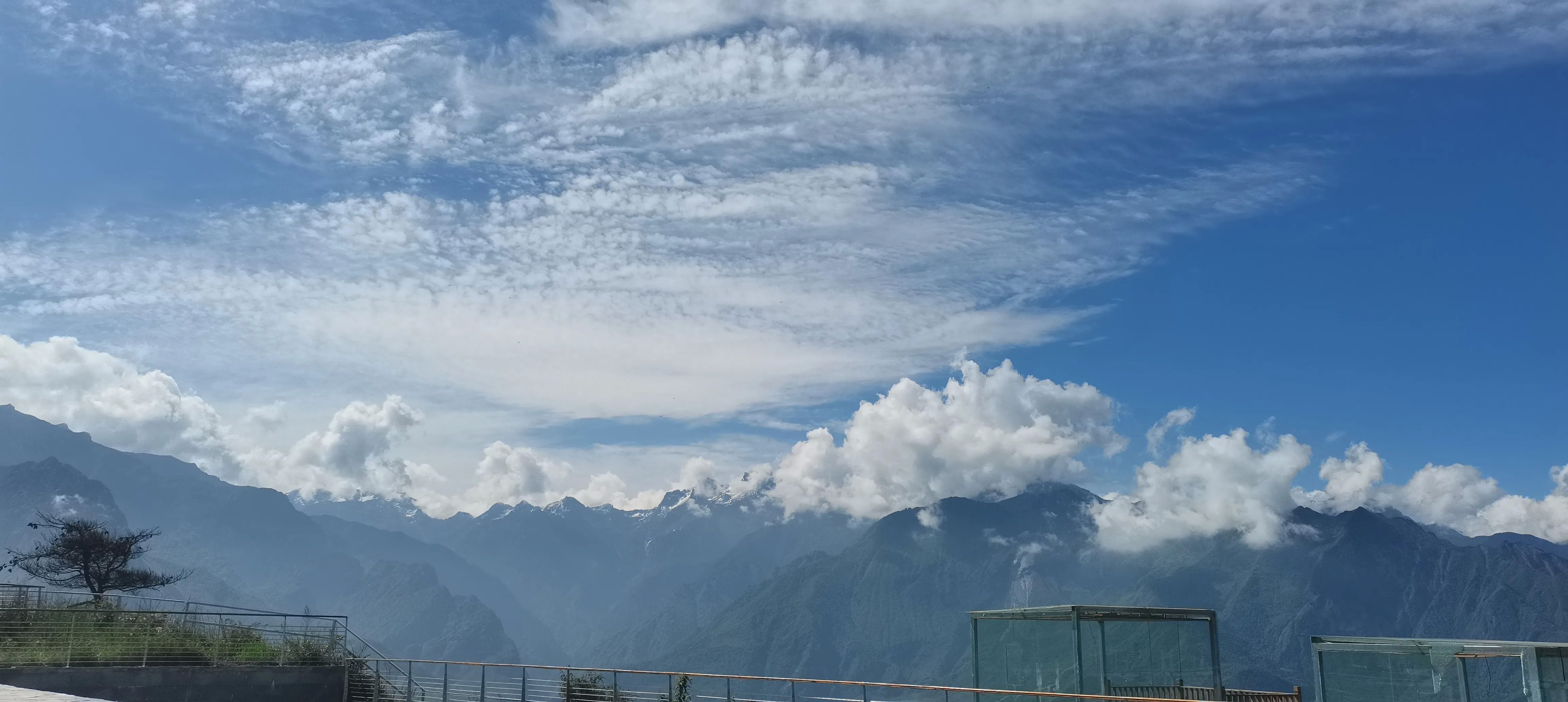 在这个平台场地里,视野相当开阔,远眺连绵耸立云宵的山脉,我虽然也走过一些高山峡谷,但在这静谧之地坐看风起云涌,也不得不感叹这山川 的巍峨雄伟,感叹这自然环境和地理变迁的神秘莫测。