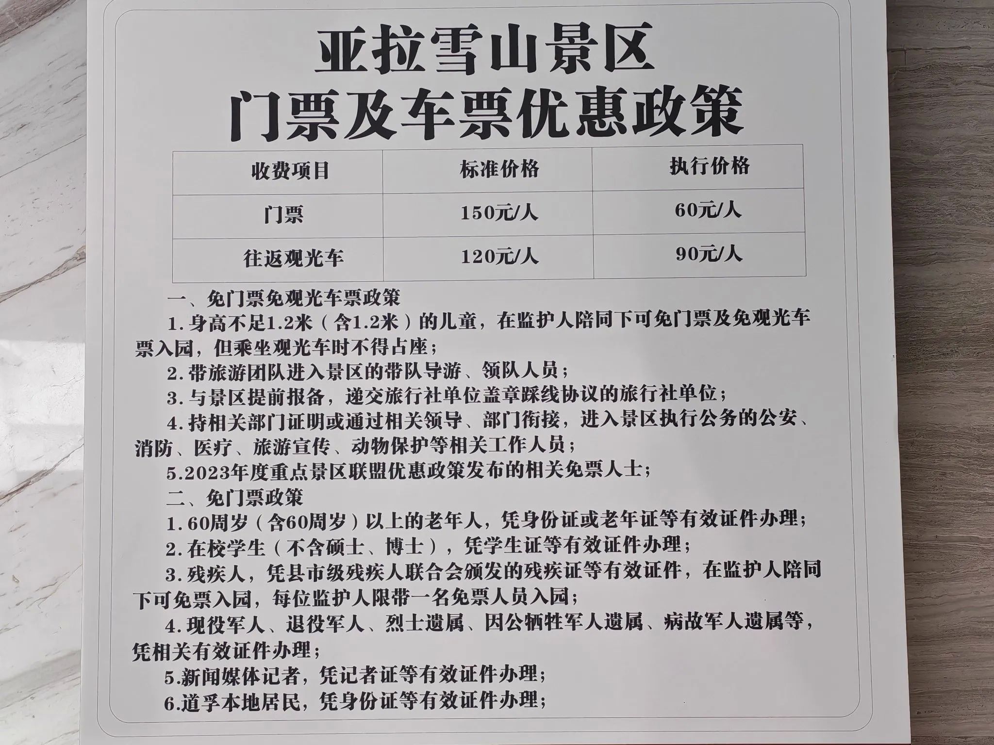 其标准票价为每人门票150元,往返观光车每人120元。而实际执行的票价是每人门票60元,往返观光车每人90元。