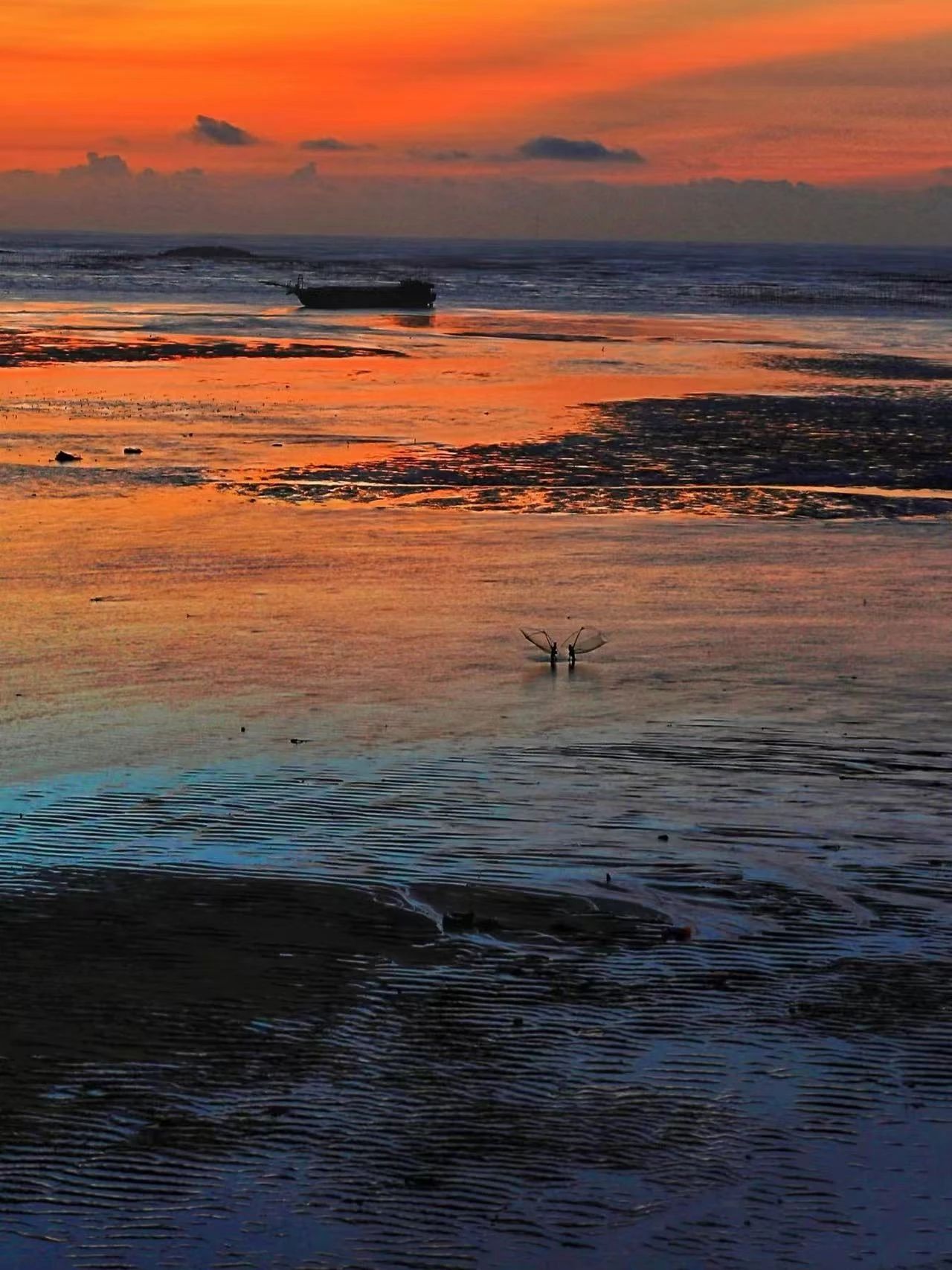 清晨5点,去北岐看日出,海面金光粼粼;傍晚,到小皓滩涂等一场落日熔金。不用专业相机,手机也能拍出震撼大片。海鲜更是便宜到哭:梭子蟹30元一斤,海蛎煎10块管饱!