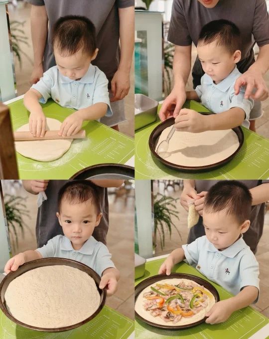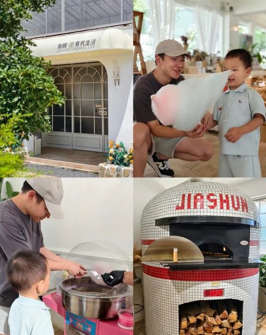 玩累了去加顺有机农场的咖啡厅坐下来歇歇,点了一杯鲜榨果汁,发现里面还有烘培课堂呢,可以家长带着小朋友做手工蛋挞,披萨,面包,棉花糖,做完可以打包带走。哇,今天又满足了小朋友自己制作美食的兴趣~