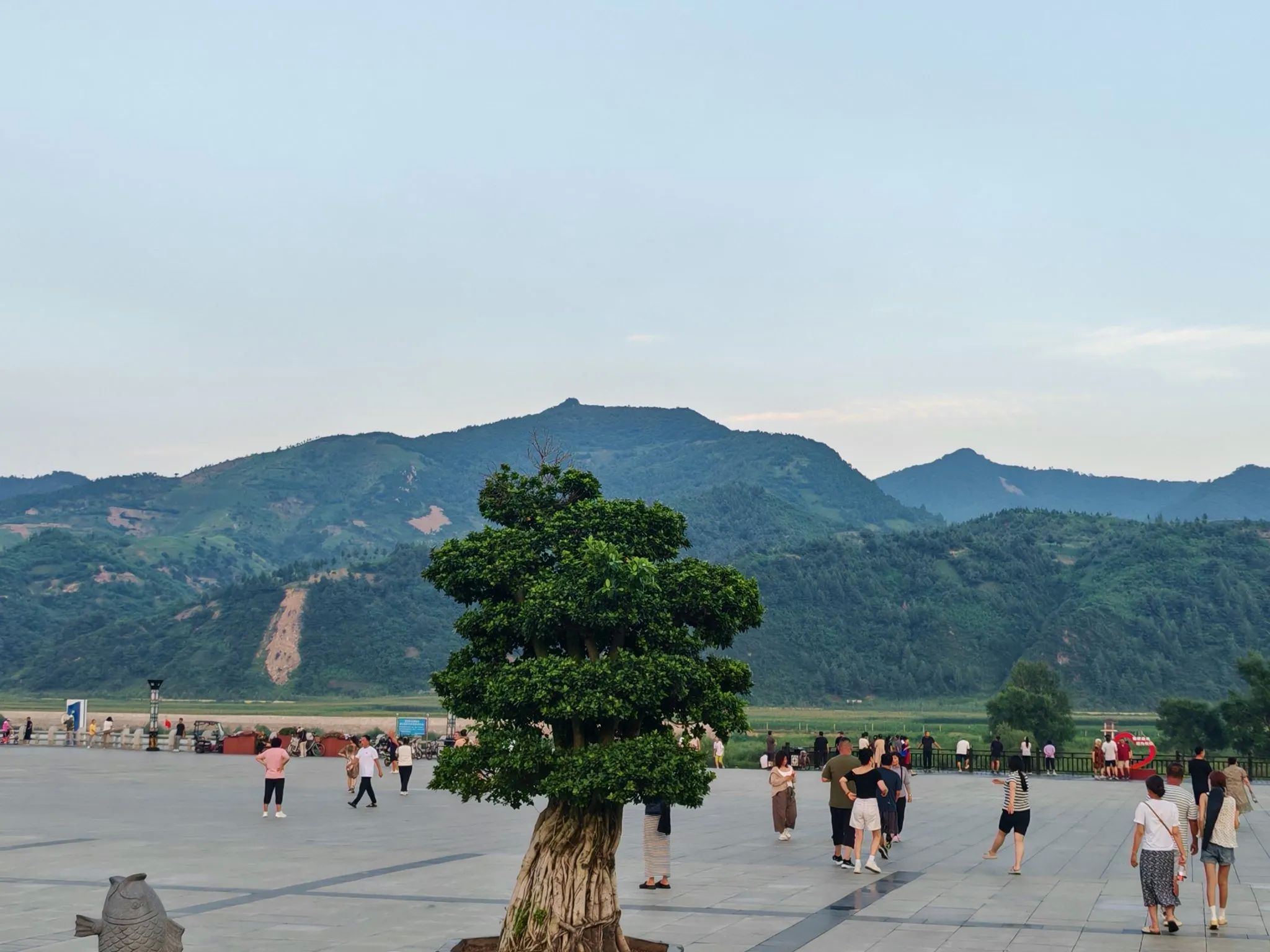 以吉他造型雕塑为标志,傍晚有市民散步,周边餐馆集中,推荐吃“集安烧烤”(羊肉串、烤冷面)或“朝鲜族石锅拌饭”。