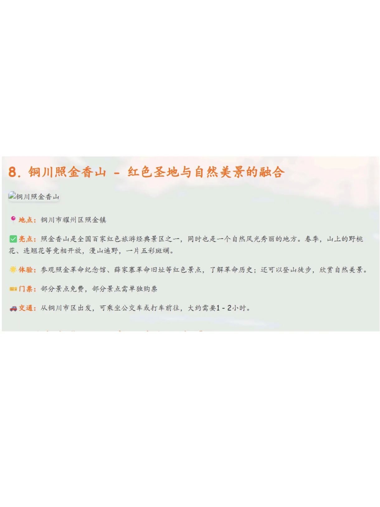 交通:从铜川市区出发,可乘坐公交车或打车前往,大约需要1 - 2小时