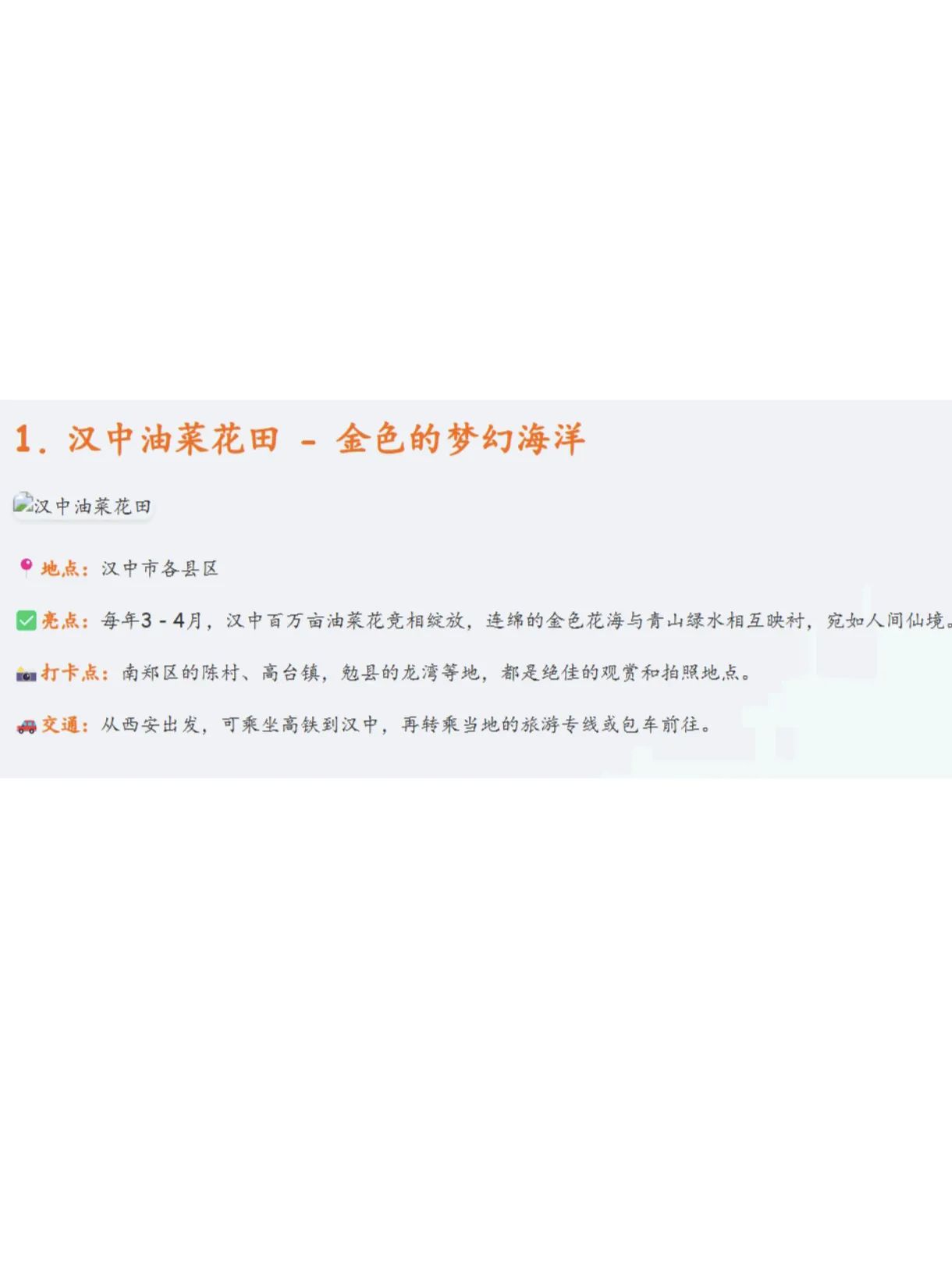 宝子们,陕西的春天就像一幅徐徐展开的绝美画卷,处处藏着惊喜。今天我就给大家吐血整理出陕西春季最值得去的10个景点,让你在这个春天不留遗憾!