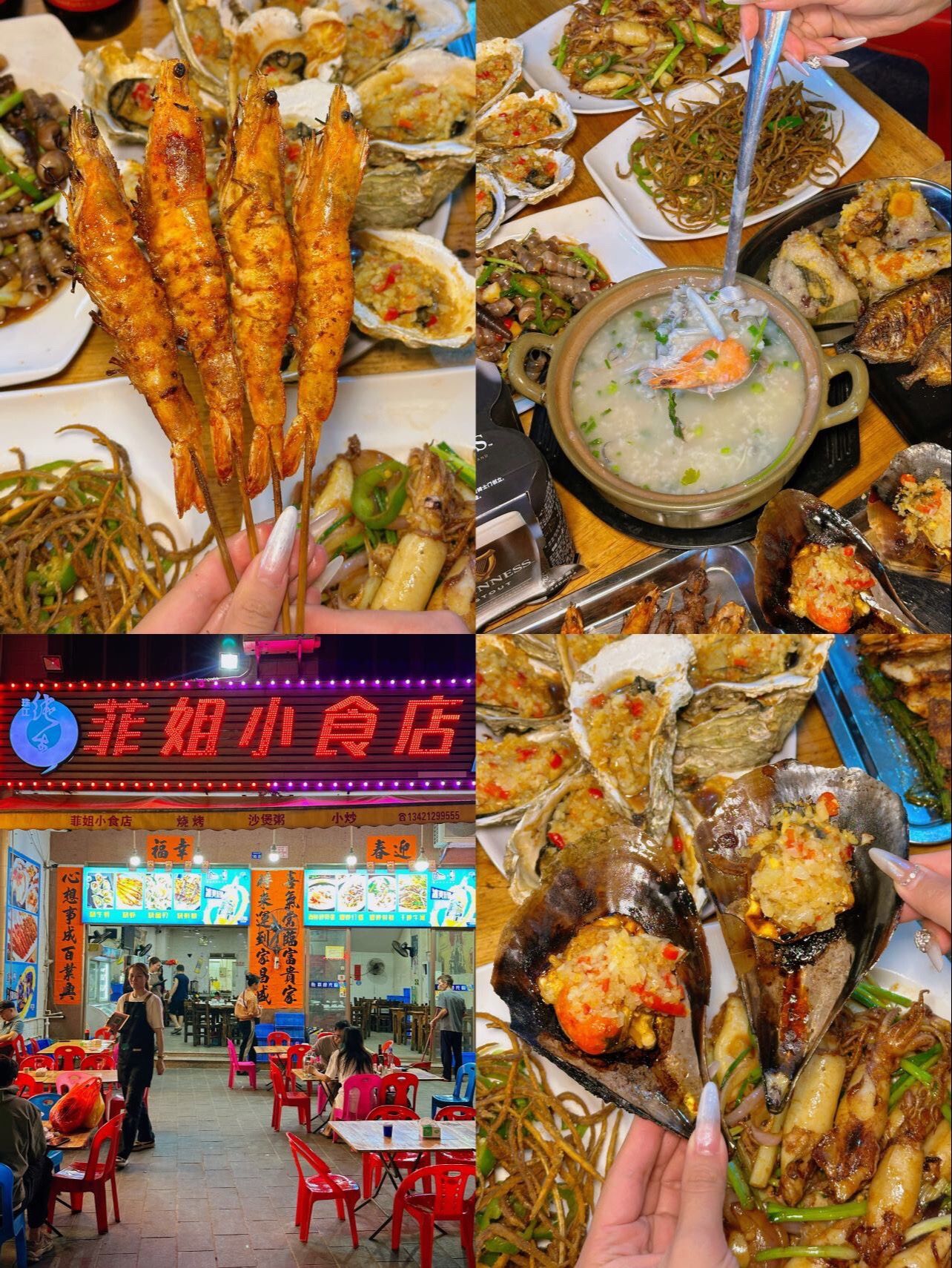 本地人推荐的一家烧烤老店,物美价廉,泥虫海鲜粥,用料很足口感丰富,还有越嗦越上头的辣炒钉螺,超大个的海鲜鲍鱼粽都好吃