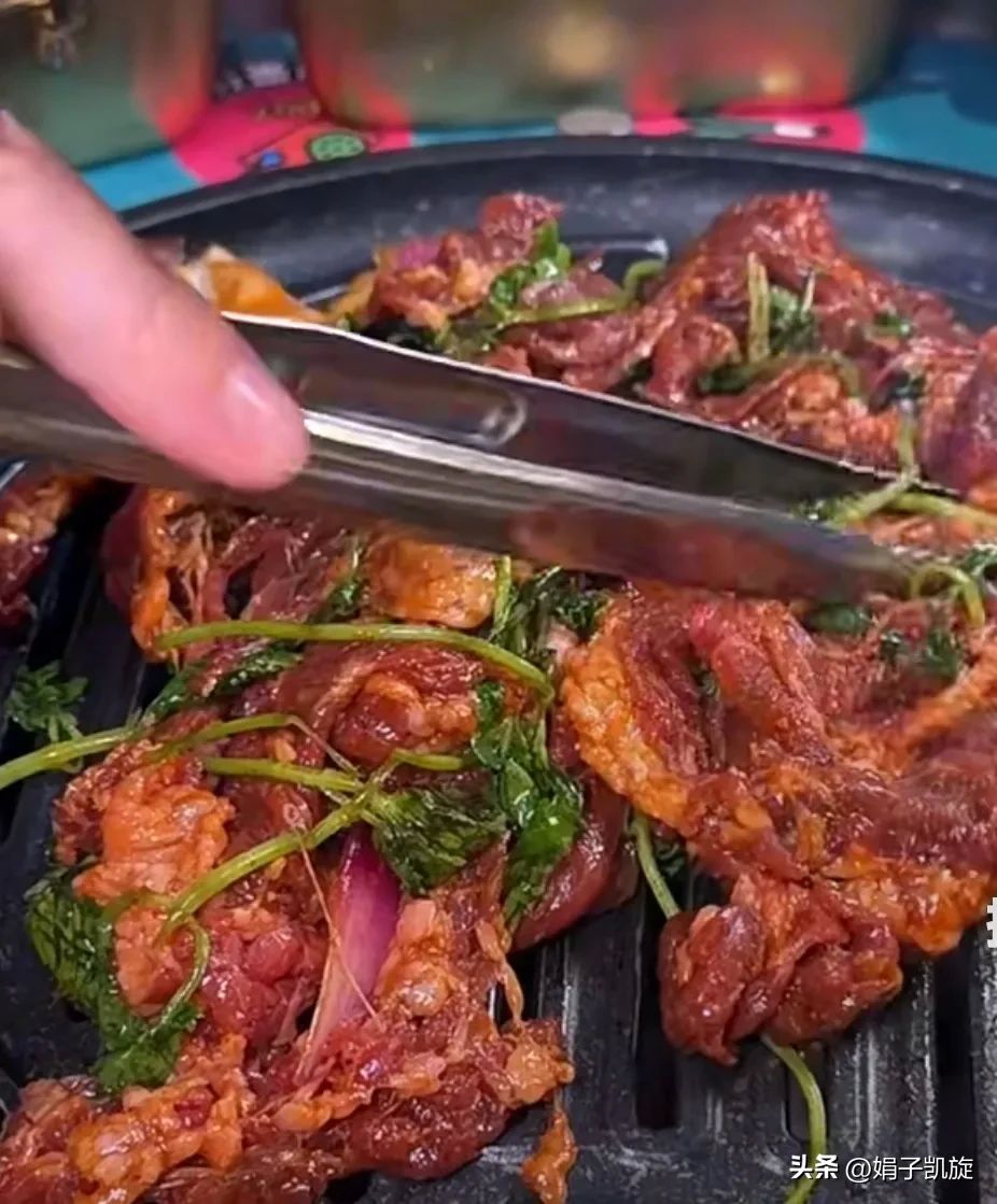 将肉片放在烤网上,伴随着“滋滋”的声响,肉片迅速变色,油脂渗出,泛起诱人的金黄色。用夹子轻轻翻动,让肉片受热均匀,不一会儿,烤肉的香气便弥漫开来。夹起一片烤好的牛肉,放入口中,鲜嫩多汁,口感醇厚,独特的香料味在舌尖绽放,让人陶醉其中。