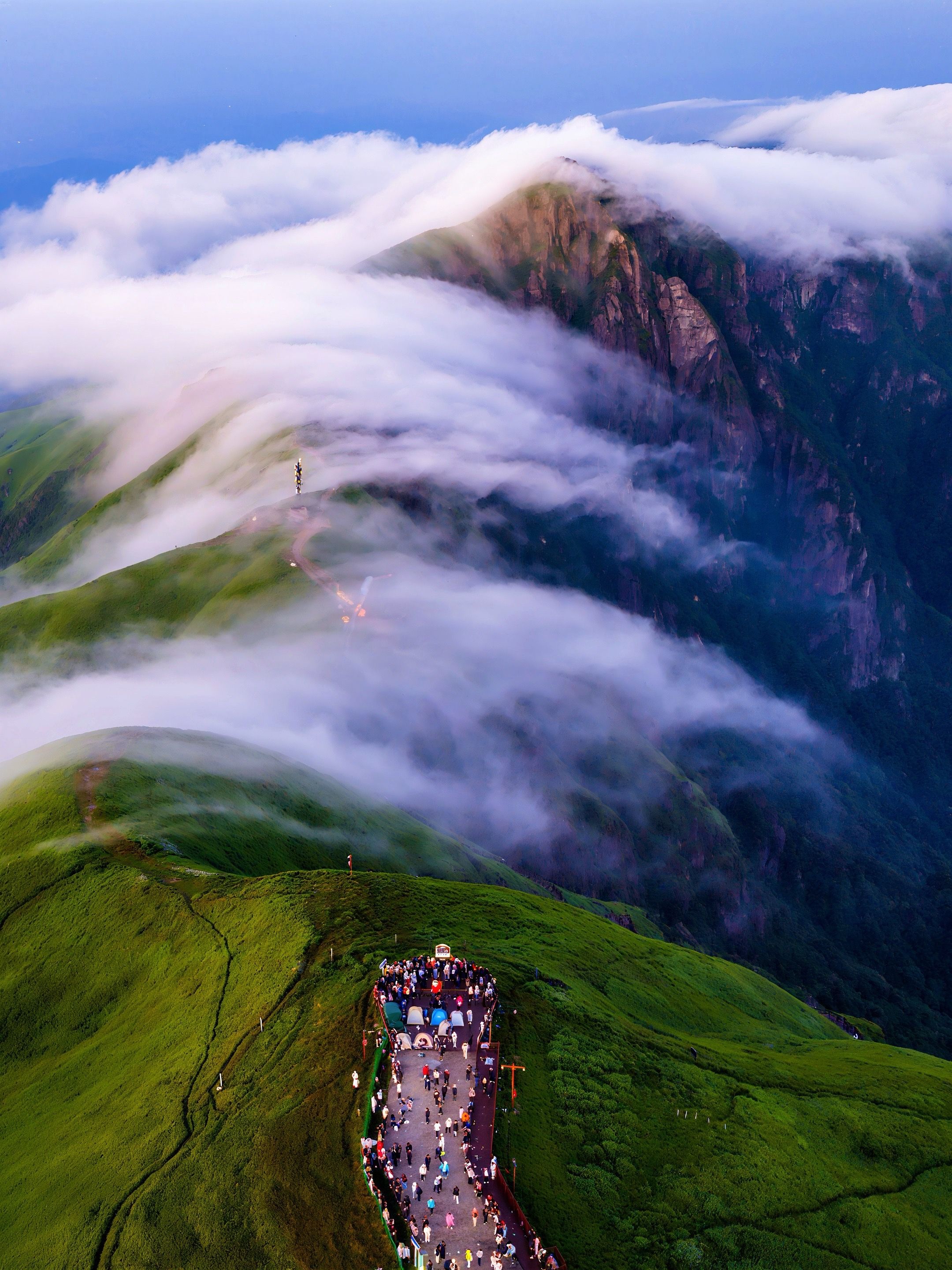 安福武功山位于江西吉安安福线县,其主峰金顶海拔1918.3米,享有国家风景名胜区、国家自然遗产等多项殊荣,还是“徐霞客游线标志地”。这里风光旖旎,以高山草甸、云海日出等景观闻名,且历史悠久,文化底蕴深厚。