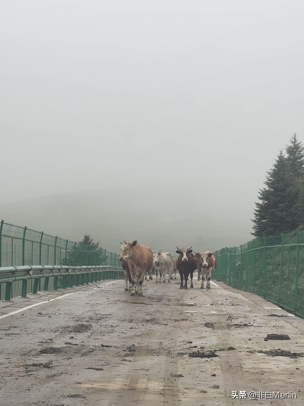 快至荷叶坪时,突起大雾弥漫,道中影绰绰出现了牛群,大牛迈着稳健的步伐,小牛亦步亦趋跟着母牛,见惯不怪的原因吧,一点也不惧怕出现在面前的车子,依然不紧不慢,不疾不徐,甚至迎向车子,面对面的审视。赶牛人从远处跑来,一声吆喝,牛群开始骚动起来,大牛带着小牛在狭窄的山路上快跑,一头壮硕的公牛甚至挤住了车子,后来到山顶查看,竟然车后轮出现了明显的凹痕。
