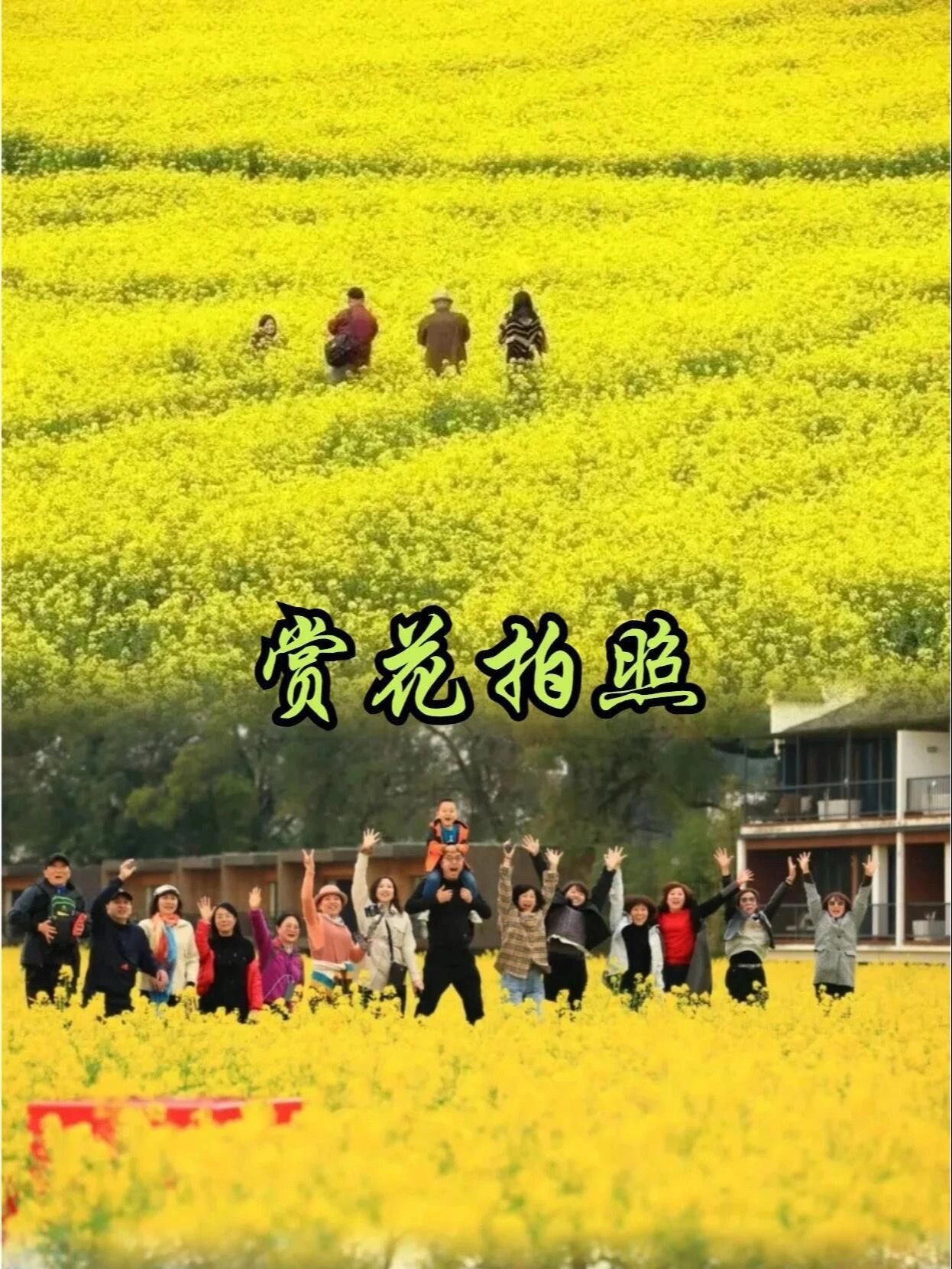 油菜花与古色古香的建筑相呼应,仿佛穿越回古代。还有丰富的游乐项目,团建超合适。