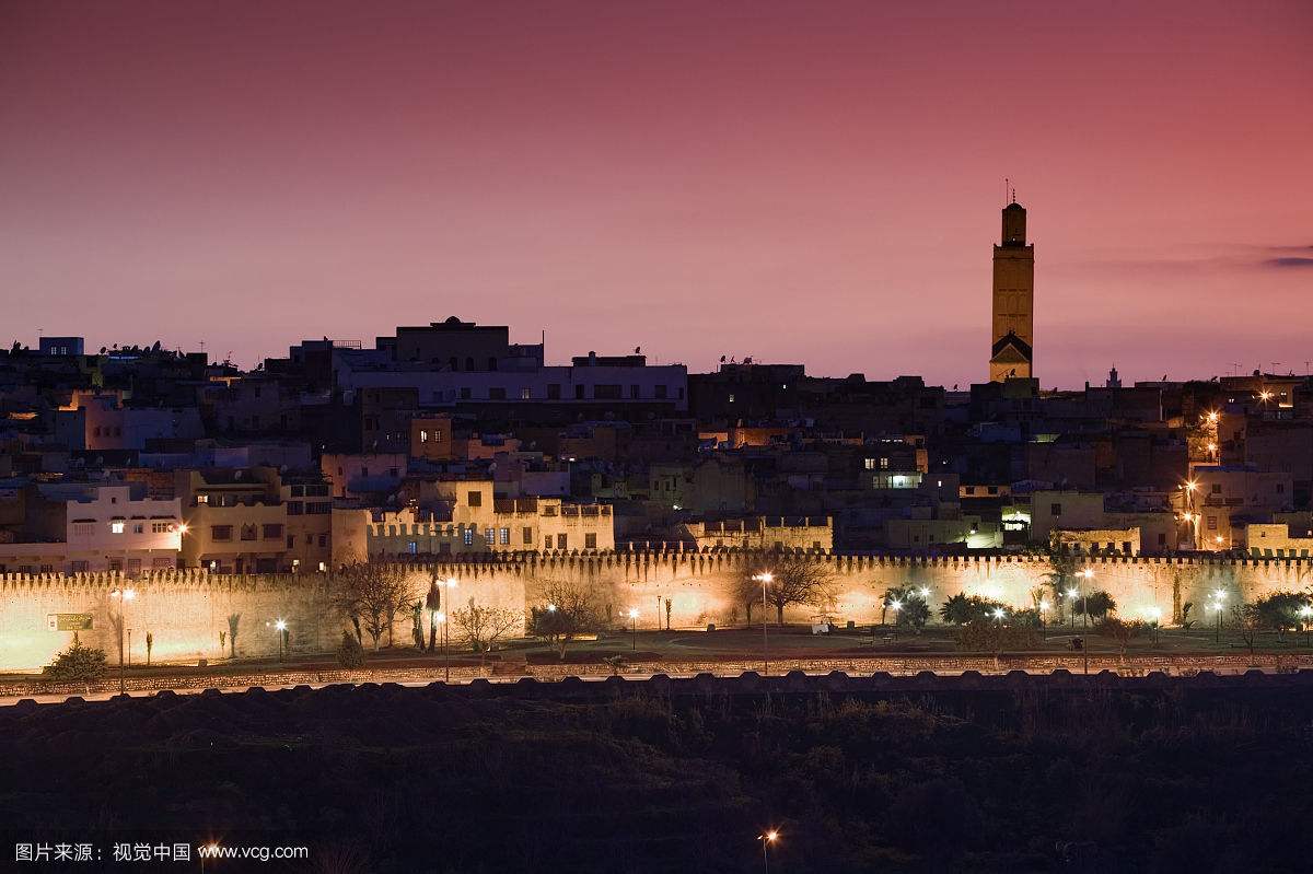 菲斯古城占地250公顷,由伊德利斯二世兴建于公元808年,是摩洛哥的第一座皇城,17公里长的城墙基本完好,保留着浓厚的阿拉伯色彩。作为中世纪城市的经典,菲斯不仅是摩洛哥的宗教圣地与文化交流中心,也是阿拉伯民族的精神所在地。