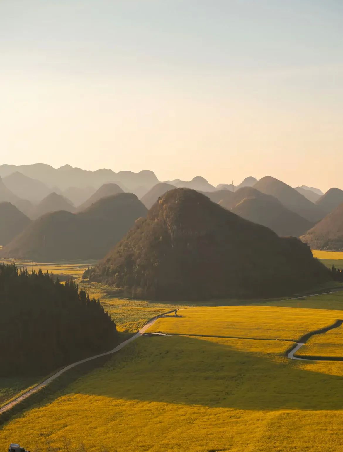 - 推荐理由:罗平的油菜花海在三四月达到盛花期,金黄色的花田与喀斯特地貌的山丘交相辉映,景色壮丽。推荐游览金鸡峰丛、螺丝田和多伊河风景区。