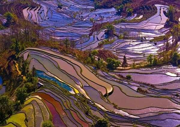9. 元阳梯田:这些梯田依山而建,层层叠叠,尤其在水稻生长季节,景色宜人,是摄影和徒步旅行的热门地点。