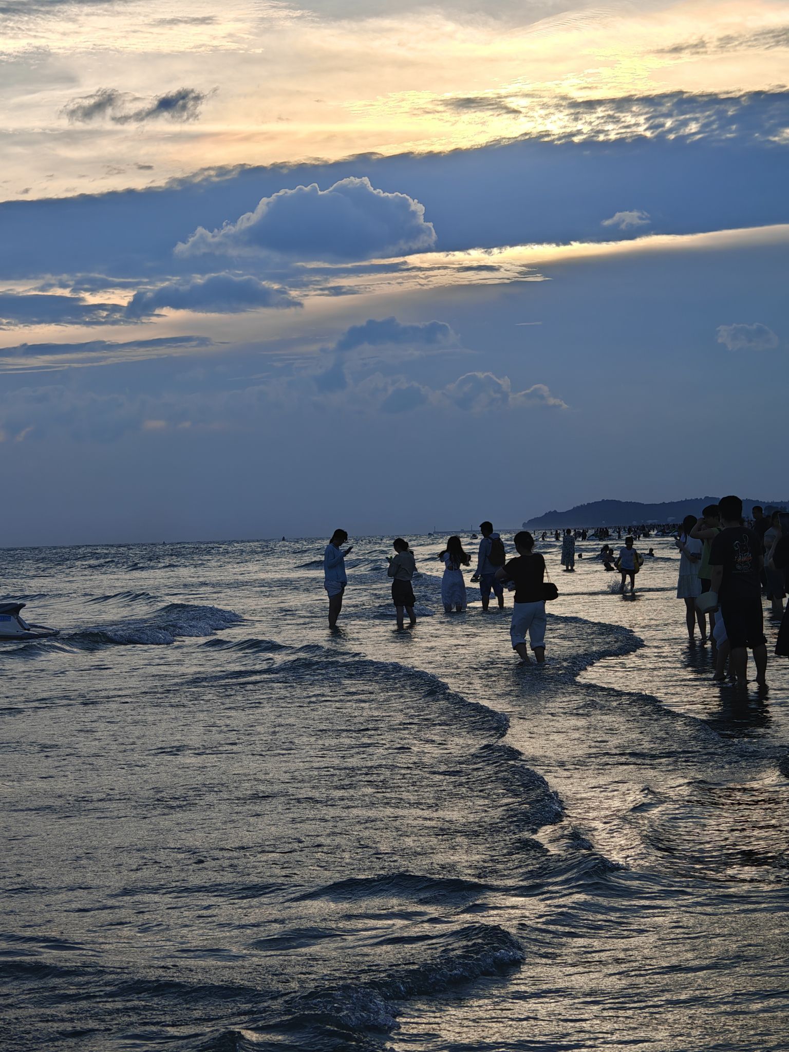 傍晚时分,夕阳像打翻的橙汁,整条海滩变成金色片场,手机随手一拍就是壁纸。